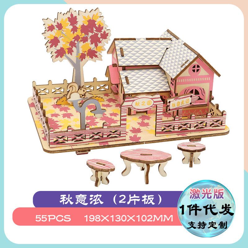 마구간 입체 퍼즐 목조 조립 3D 목조 건물 모델 수제 목조 주택 DIY 교육 완구 도매스토어 가기