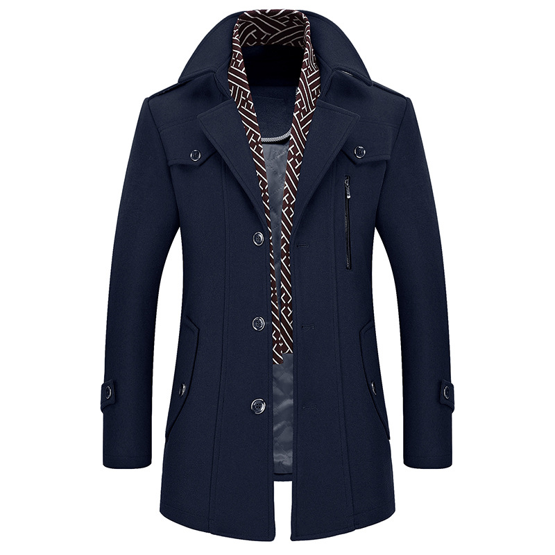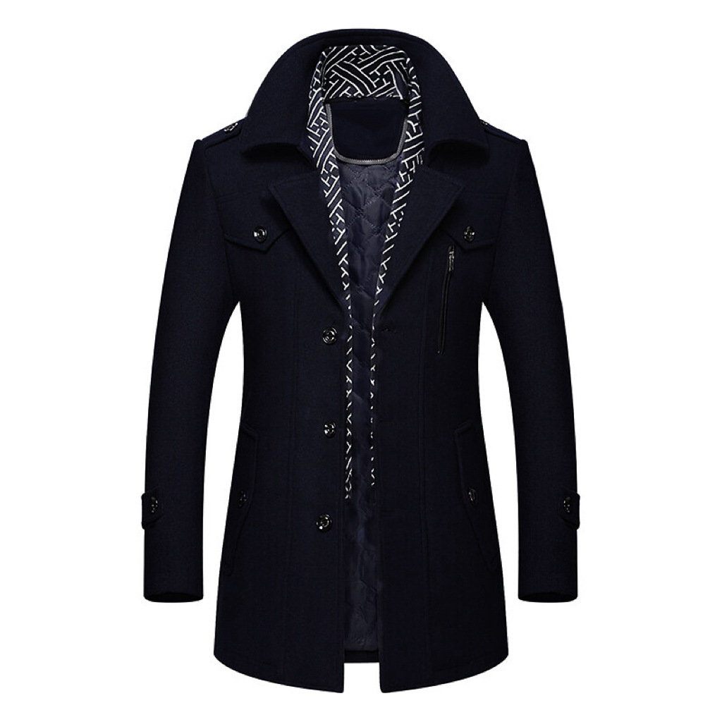 가을과 겨울 새로운 남성 비즈니스 캐주얼 울 코트 중년 및 노인 울 두꺼운 아빠 스카프 코트