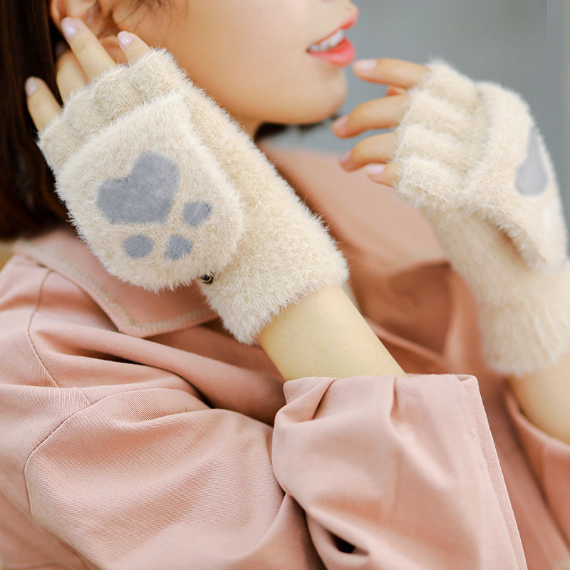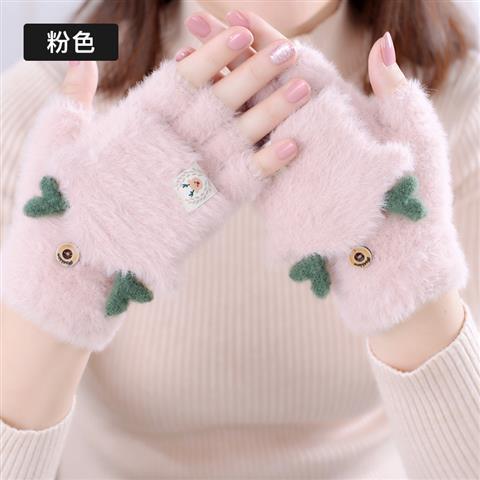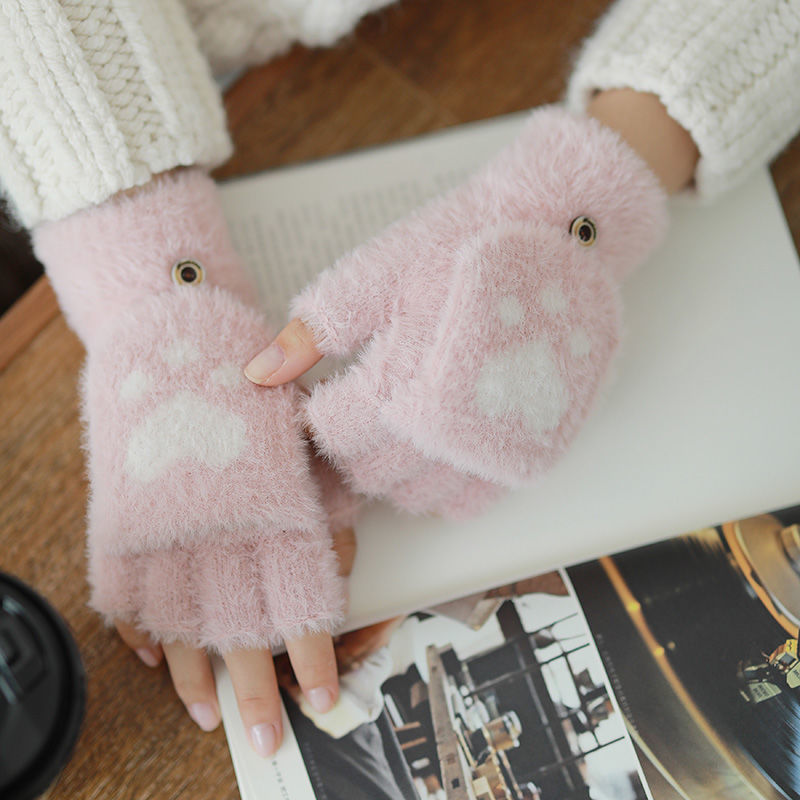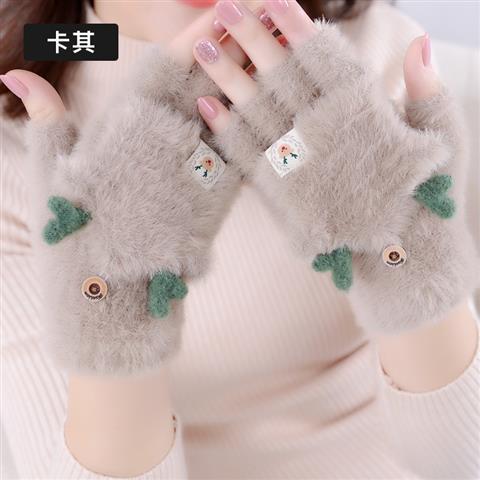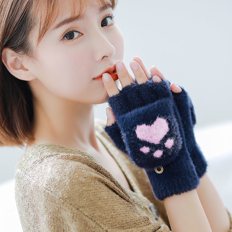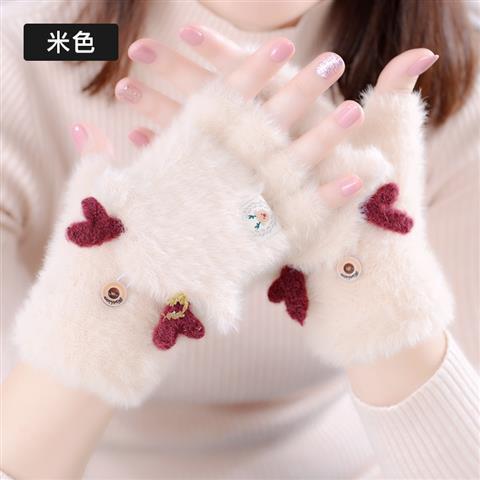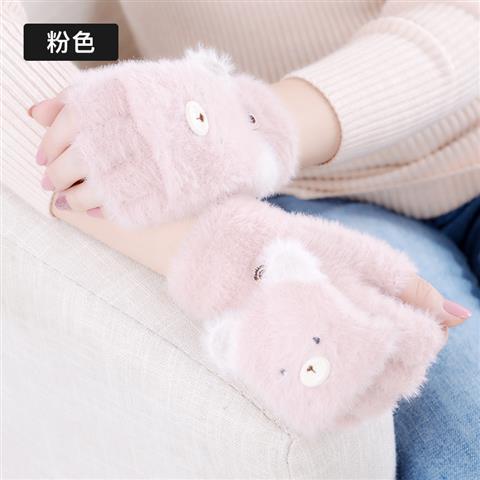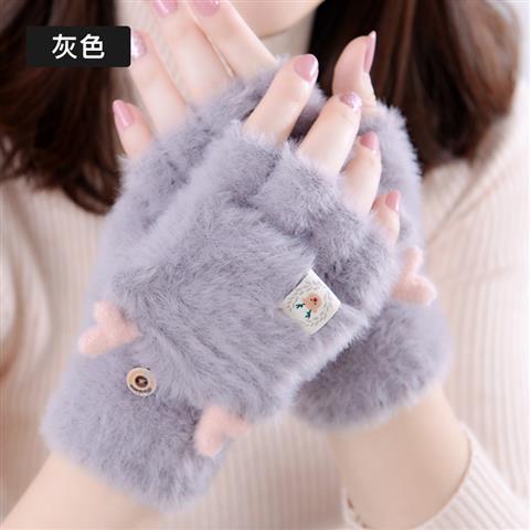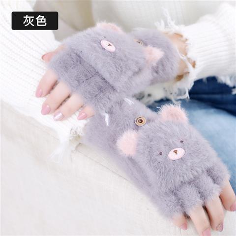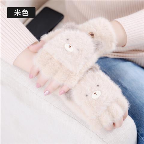 장갑 여자의 겨울 두꺼운 따뜻한 반 손가락 장갑 한국식 모든 경기 만화 유행 인터넷 학생들을위한 인기 장갑 기모스토어 가기
