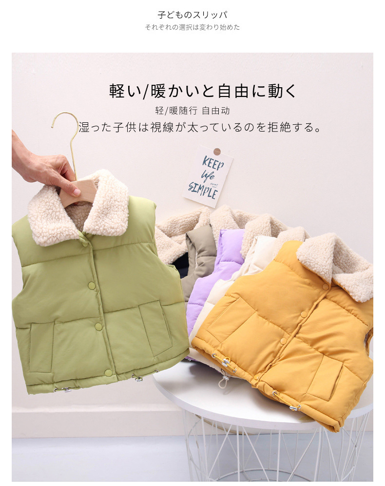 아동용 램스울 조끼, 남아용 따뜻한 아우터 조끼, 여아용 벨벳 두꺼운 조끼, 아동용 다운 면 조끼