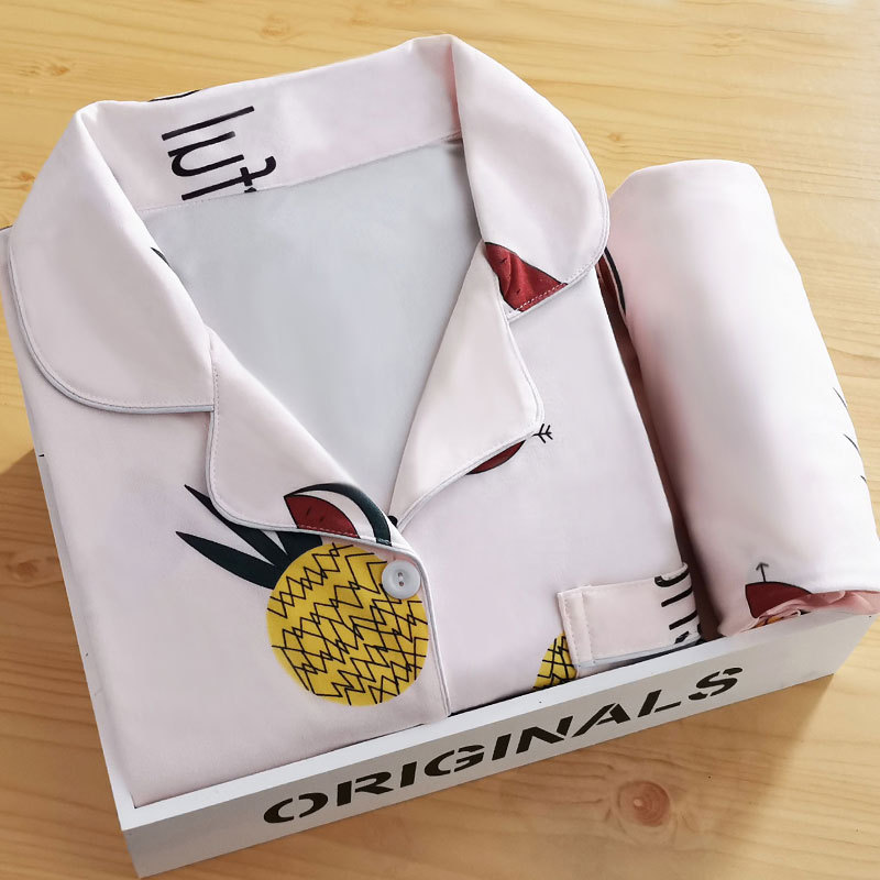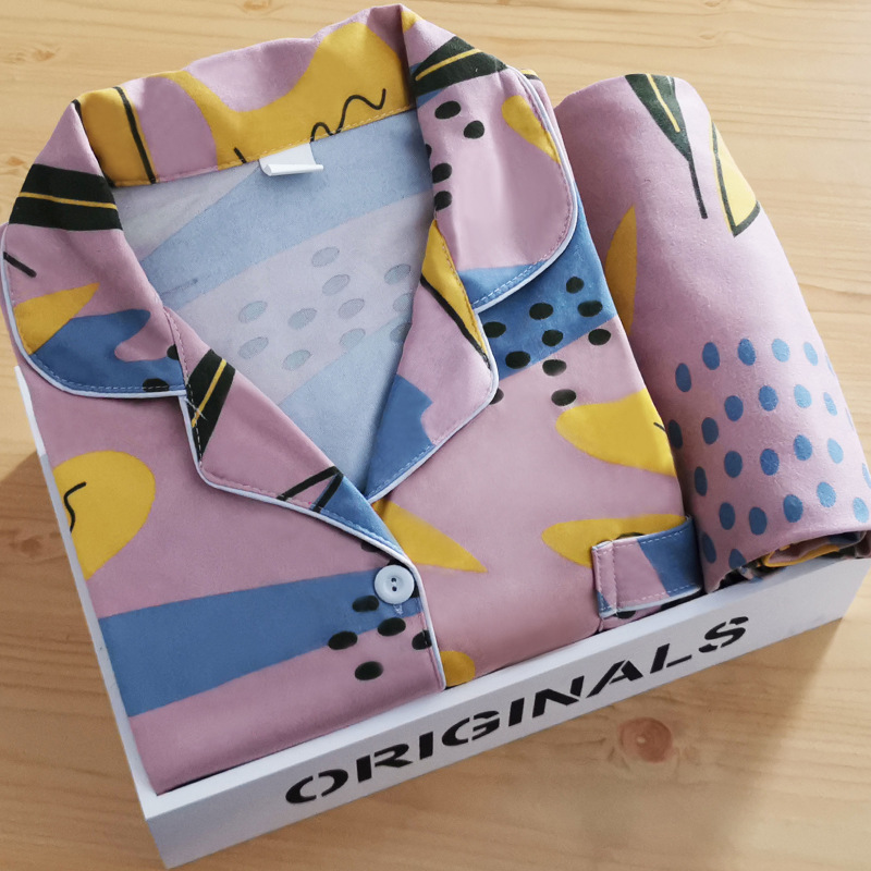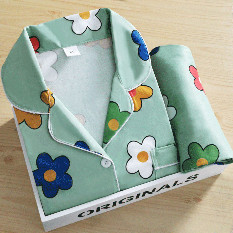 Ins Microbusiness 얇은 옷깃 파자마 여성의 봄과 가을 카디건 긴 소매 바지 만화 대외 무역 여성 홈 의류 세트
