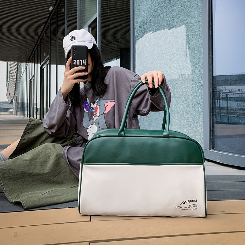 • 志豪新款皮质短途手提行李包PU拼色手提旅行包时尚男女运动健身包