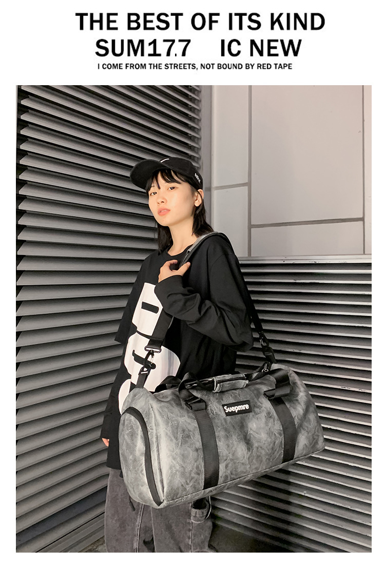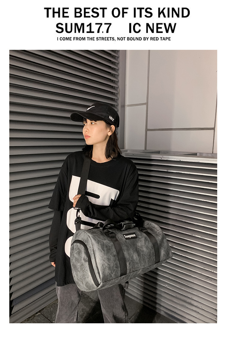 • 2020新款圆筒双肩旅行包字母印花牛津布防水单肩斜挎运动健身包男