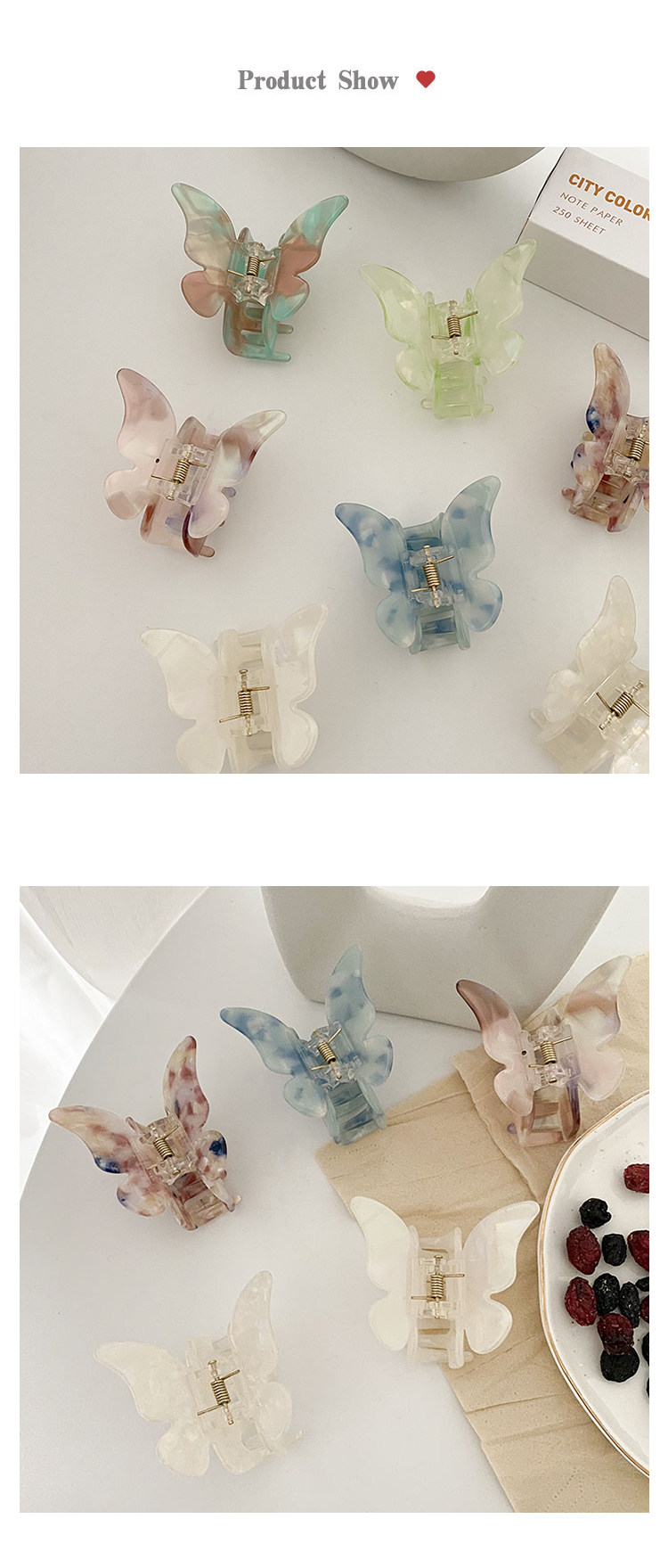 • 6 # 컬러 아크릴 나비 그립 클립