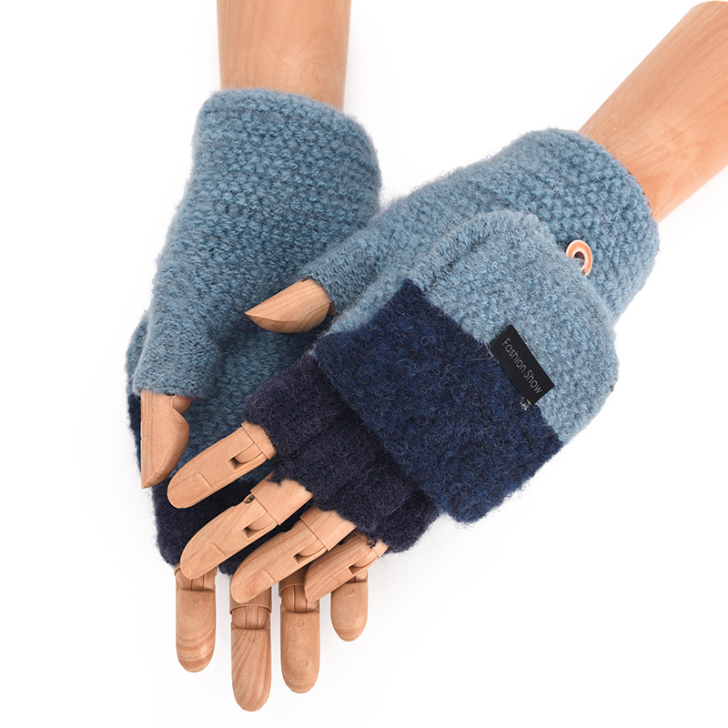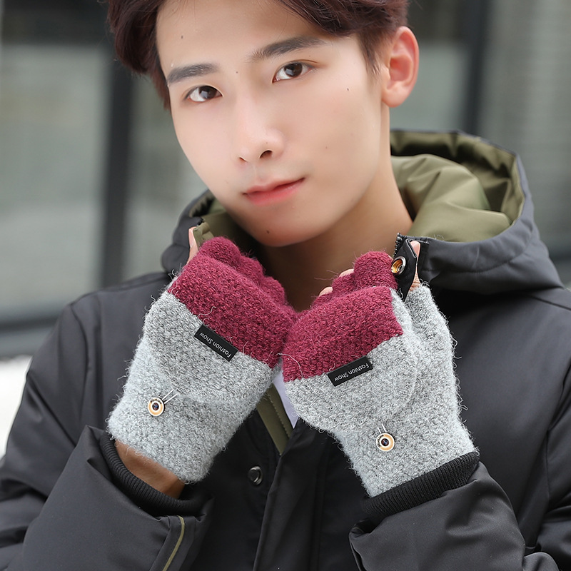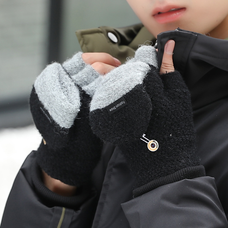 장갑 남성용 겨울 두꺼운 따뜻한 반 손가락 오픈 핑거 사이클링 학생 패션 면 니트 울 방한 남성용스토어 가기