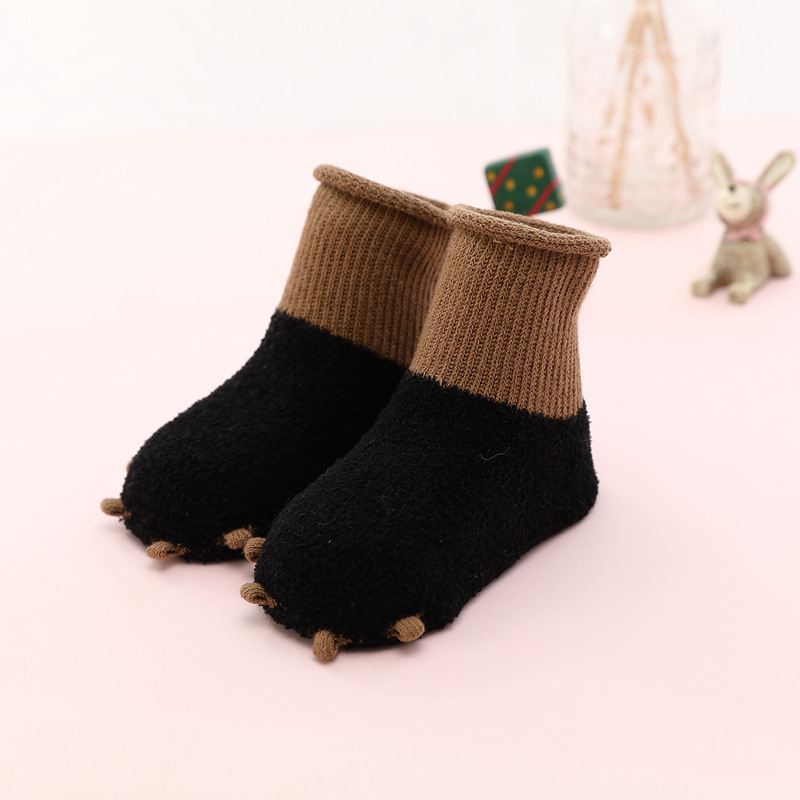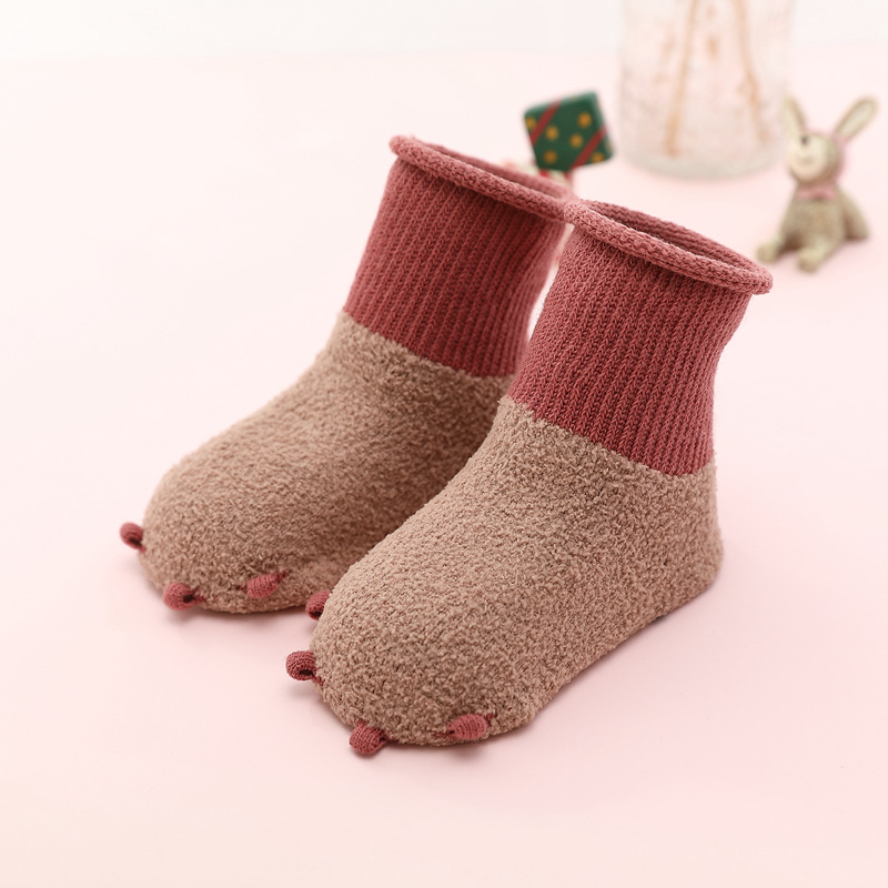사계절 아기 겨울 얇은 아이 두꺼운 단색 외부 유아 양말 아기 바닥 양말 미끄럼 방지 필링