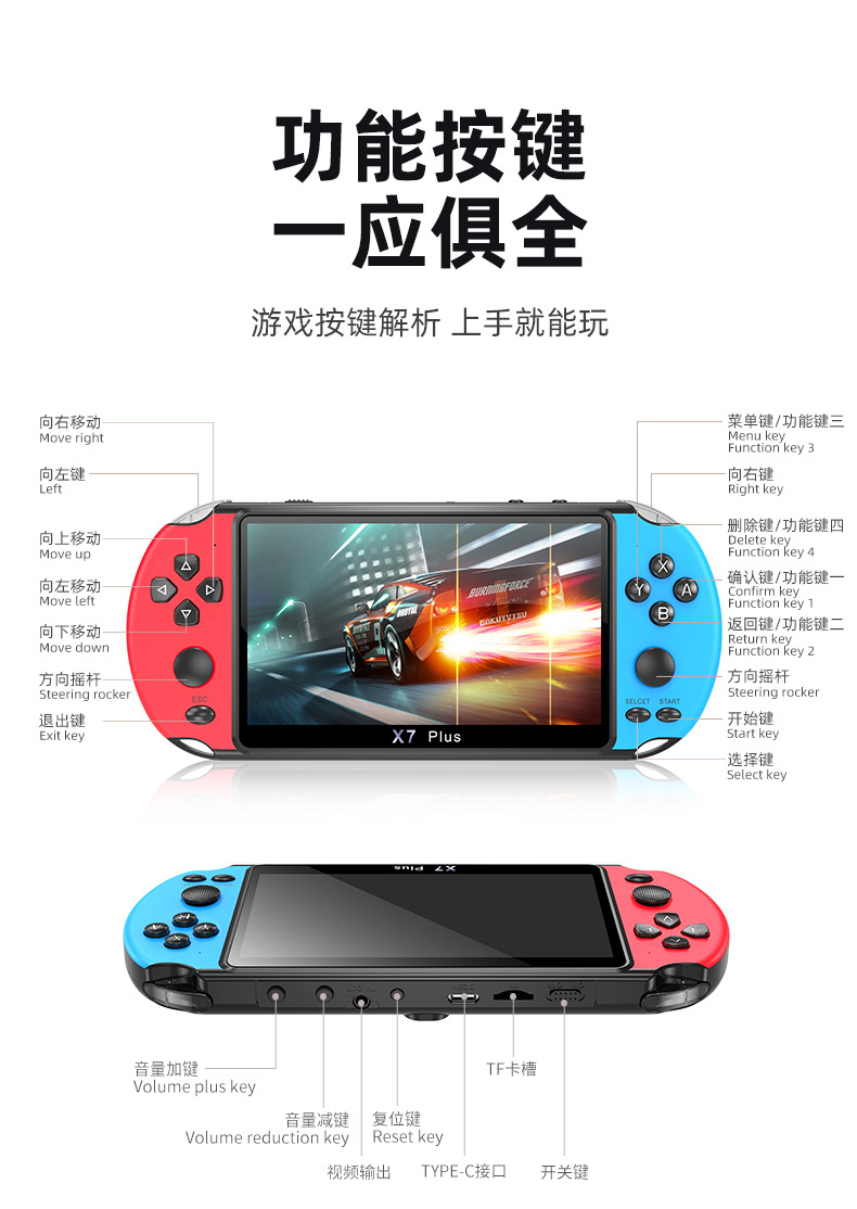 크로스보더 x7plus 휴대용 게임 콘솔 PSP 5.1inch 공장 직매 대형 스크린 레트로 향수 크로스보더 GBA 휴대용 게임 콘솔