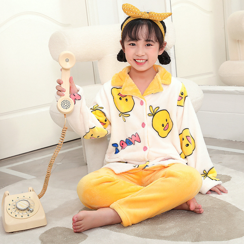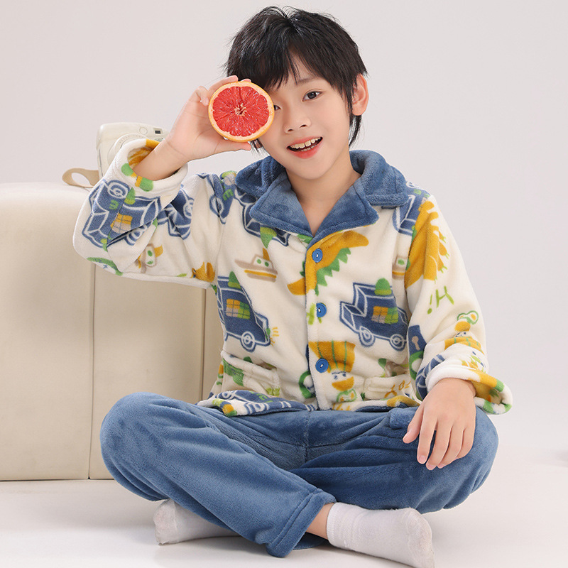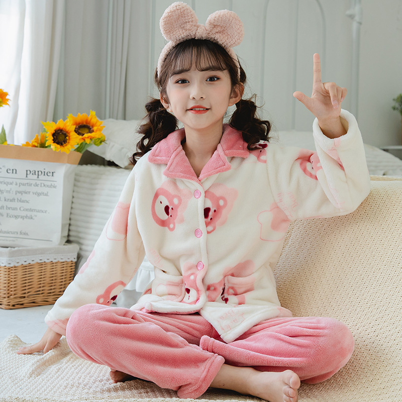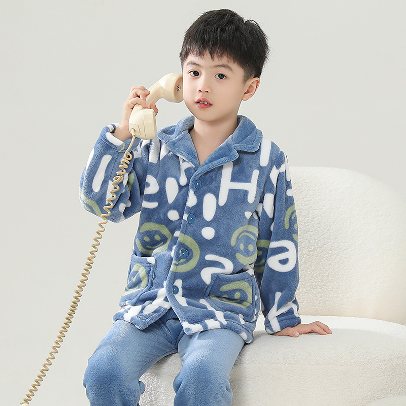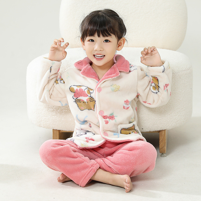 가을과 겨울 소년과 소년을위한 어린이 산호 양털 잠옷 두꺼운 겨울 플란넬 아기 소녀의 가정 옷 세트