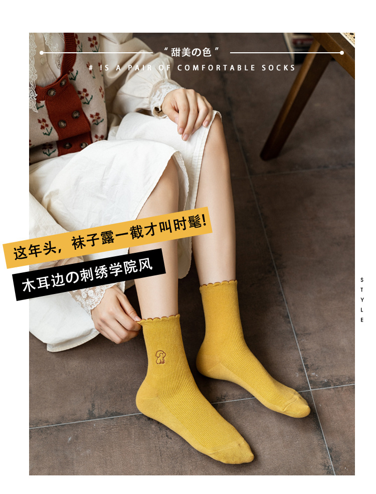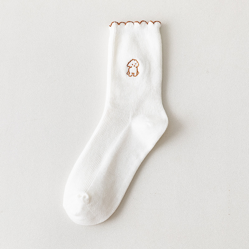 2020 가을과 겨울 양말 어린이 자수 강아지 레이스 튜브 양말 학생 편안한 캐주얼 귀여운 여성 양말 도매 조수스토어 가기