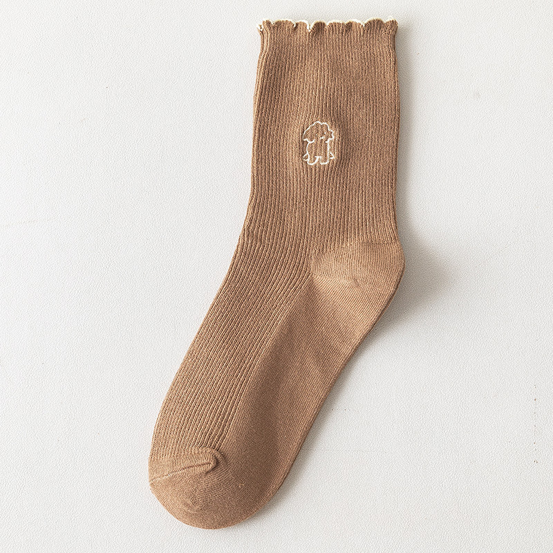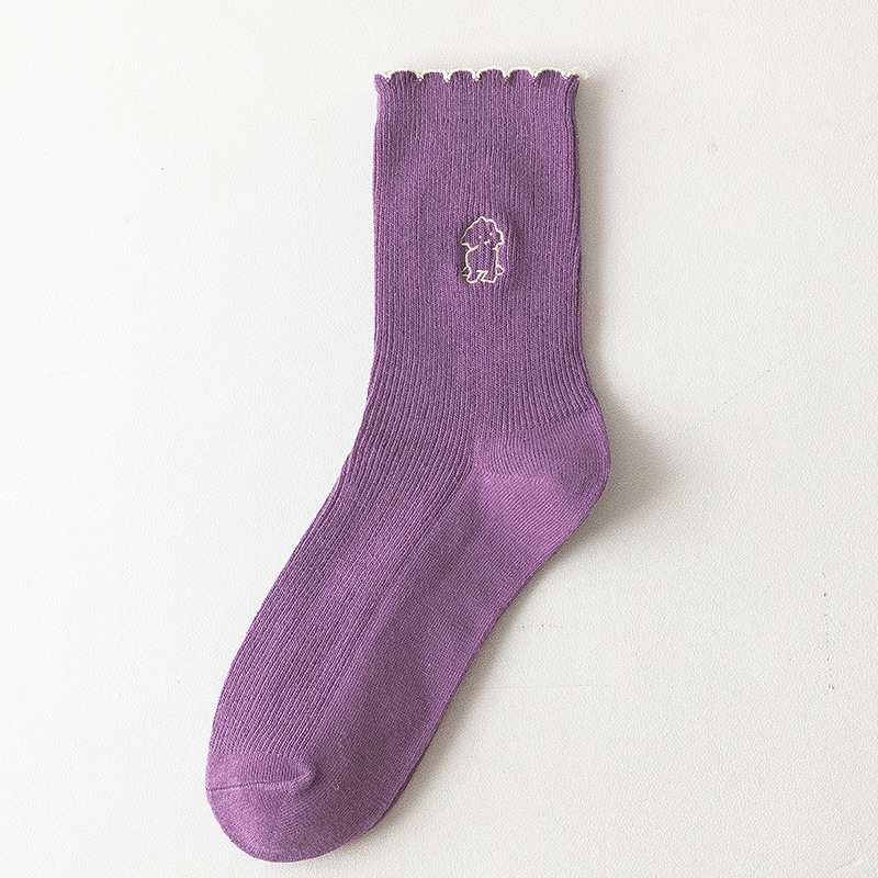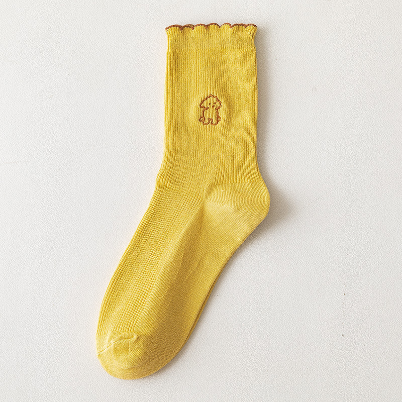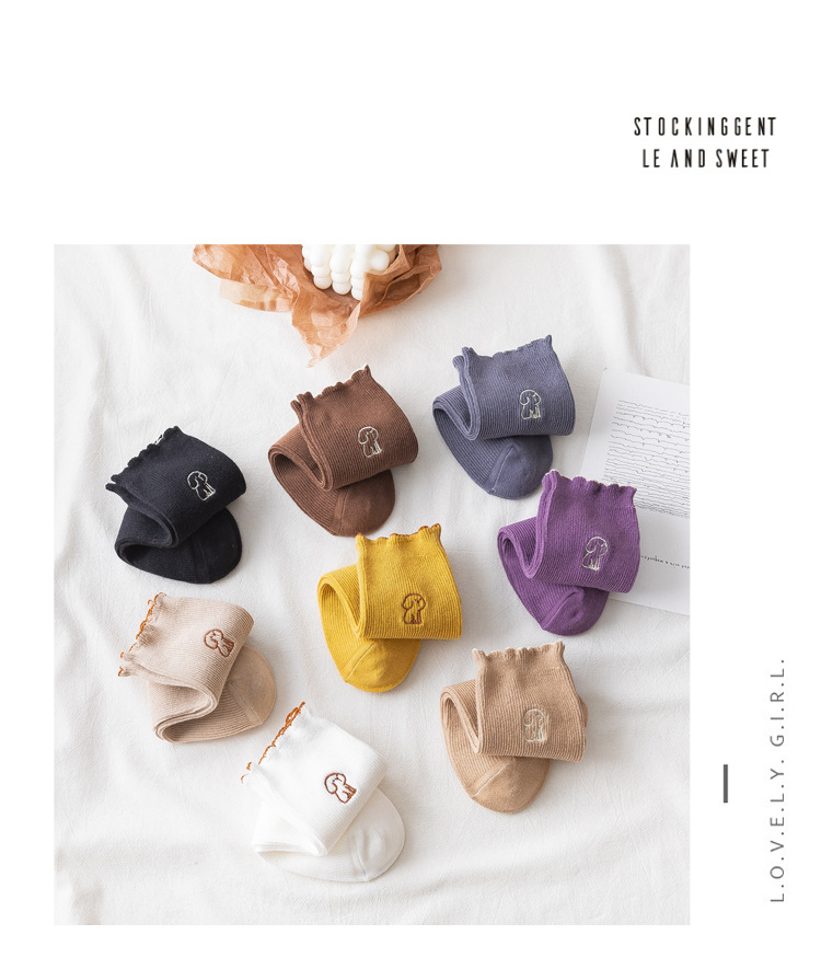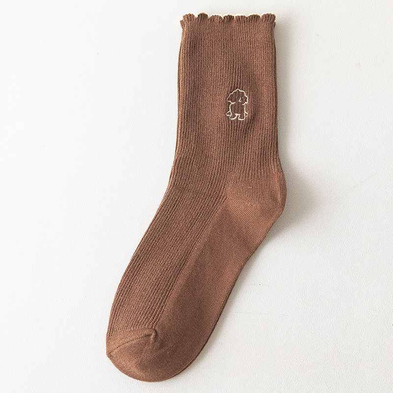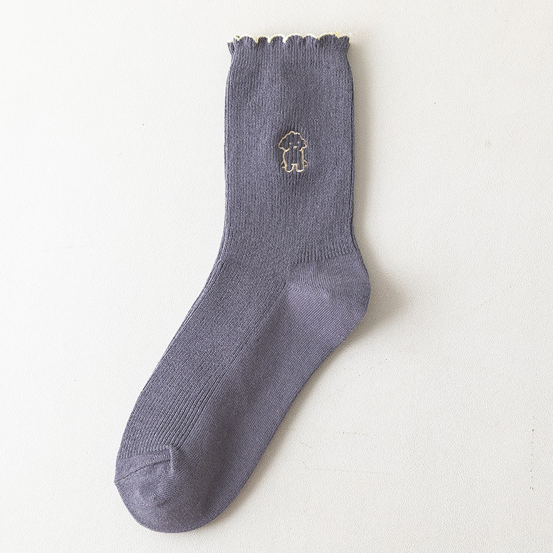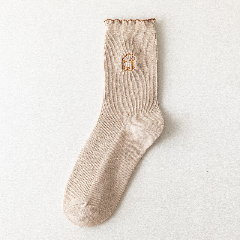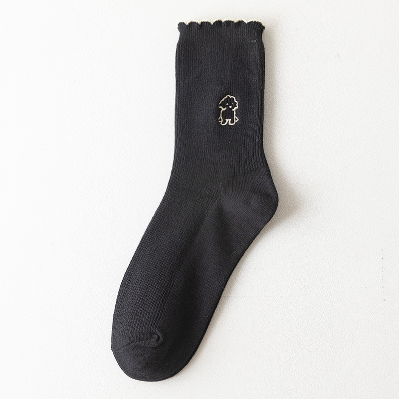 2020 가을과 겨울 양말 어린이 자수 강아지 레이스 튜브 양말 학생 편안한 캐주얼 귀여운 여성 양말 도매 조수