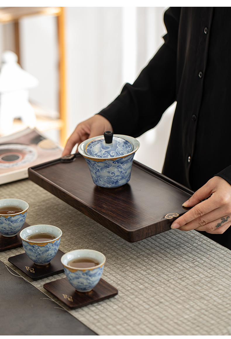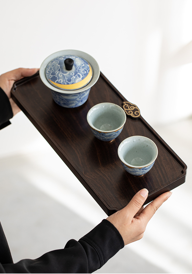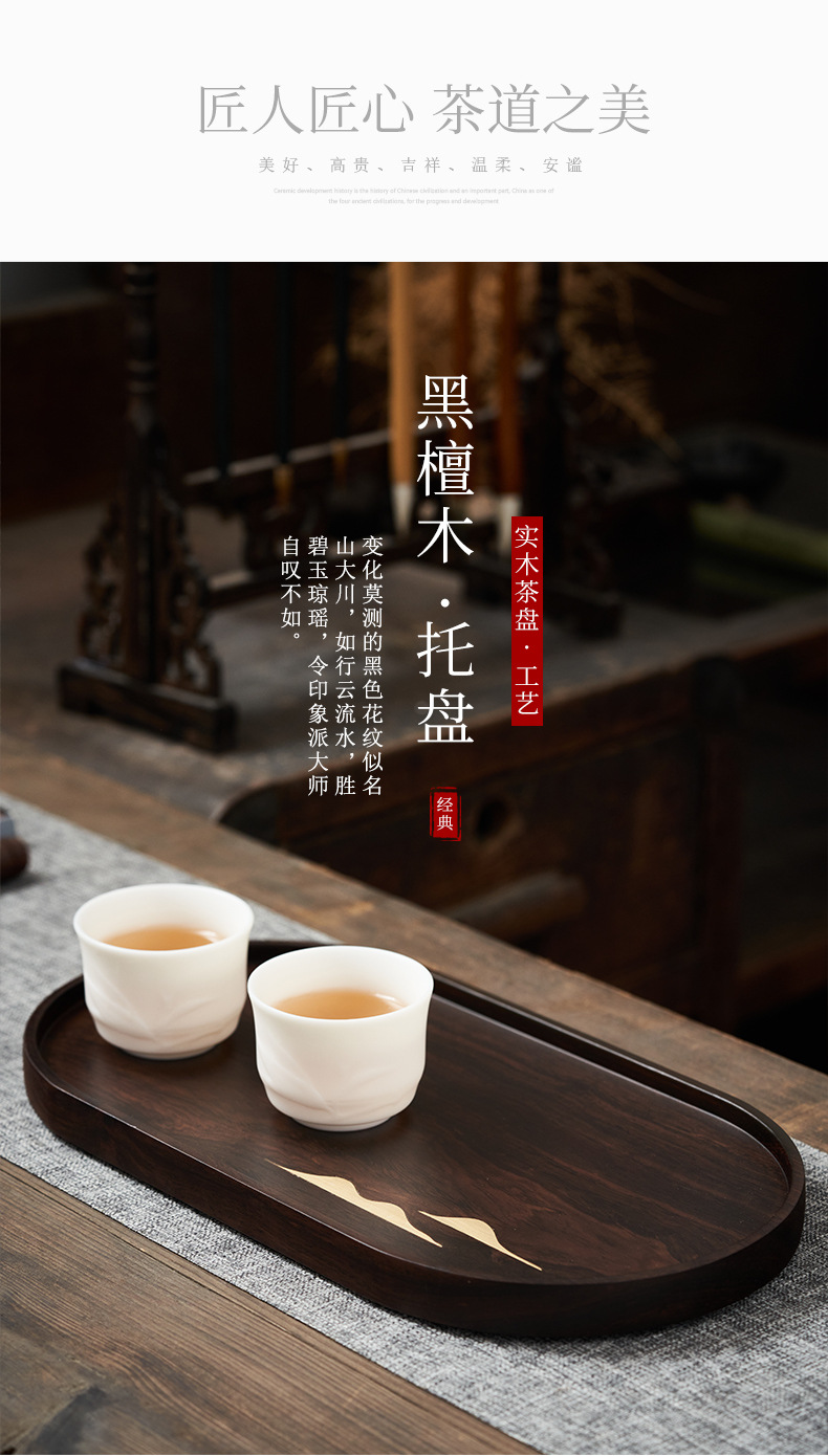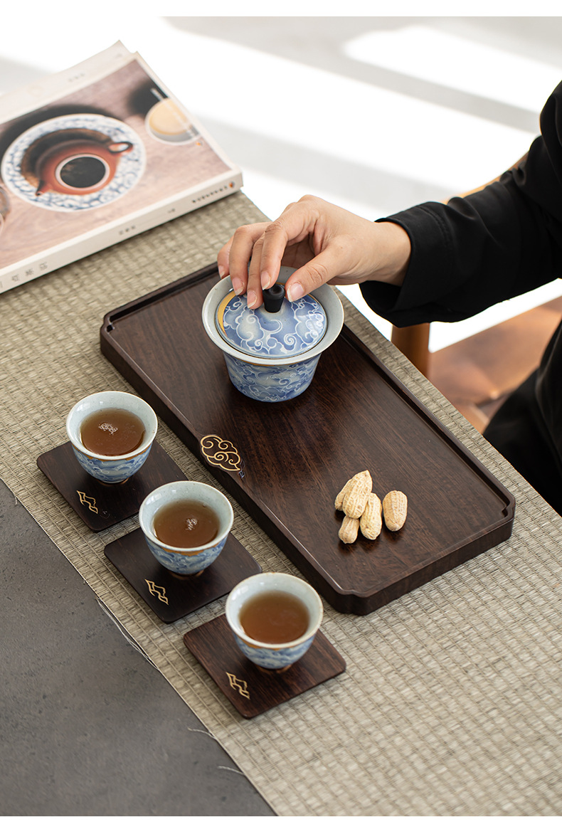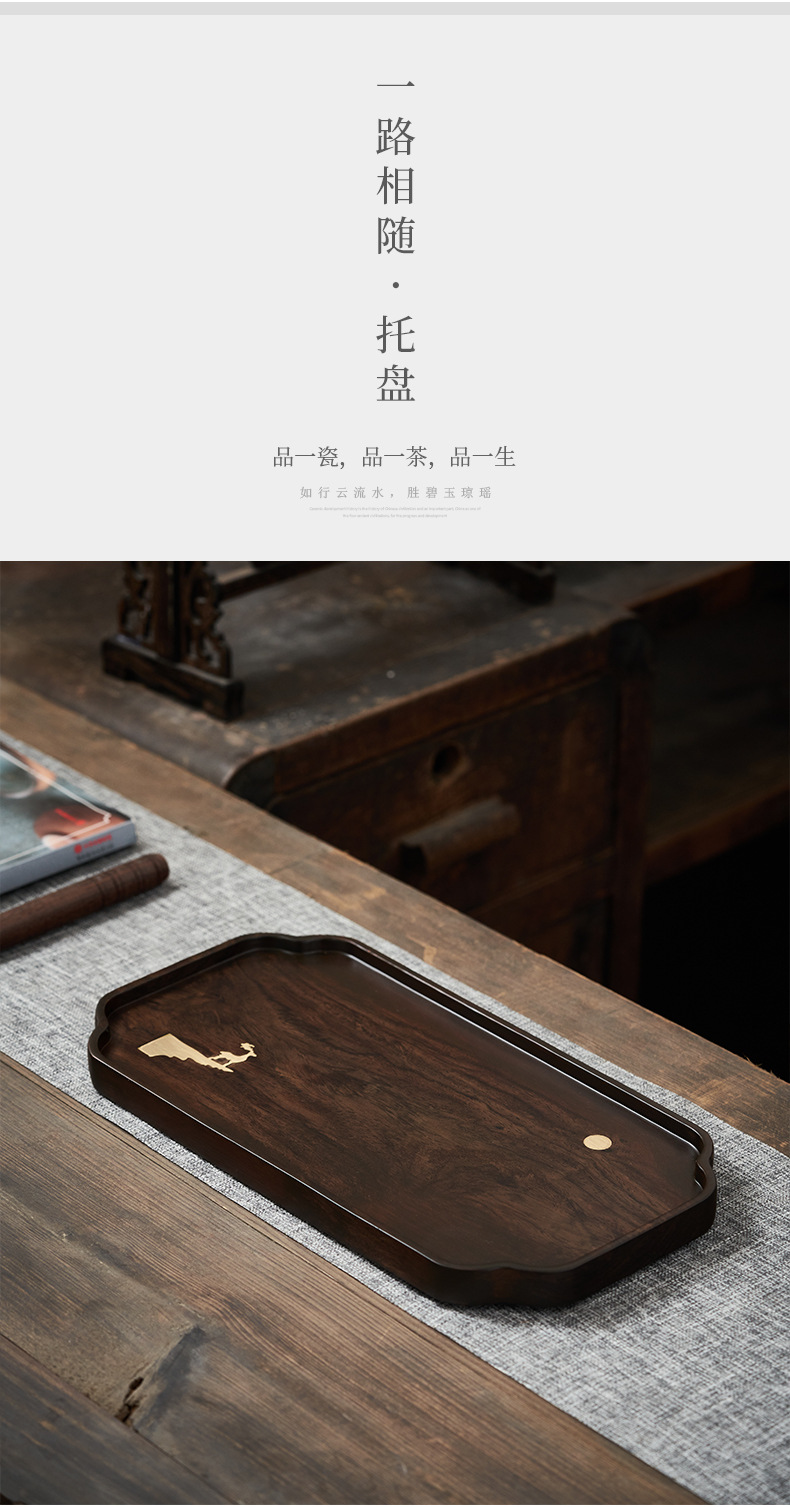 항상 당신과 함께하는 흑단나무 건식 다도차 트레이, 선(禪) 스타일 원목 찻주전자 받침대, 일본식 직사각형 트레이