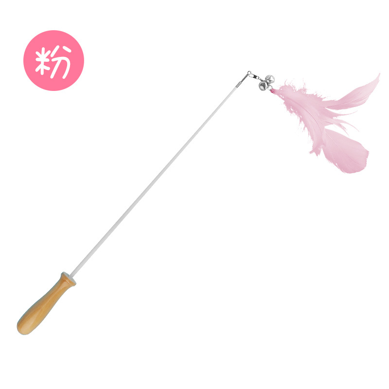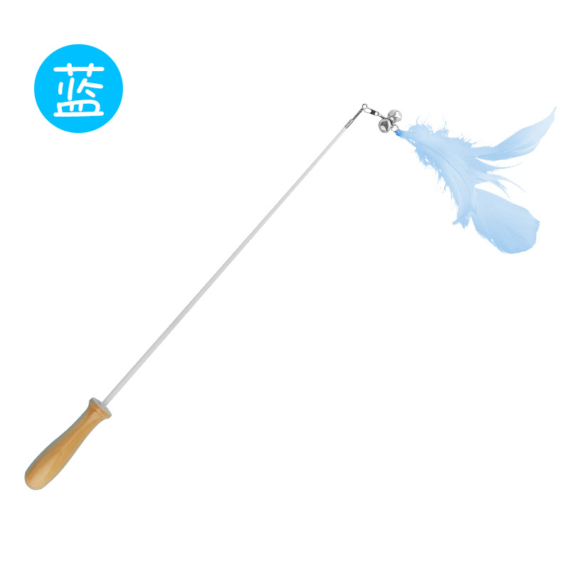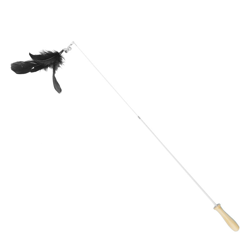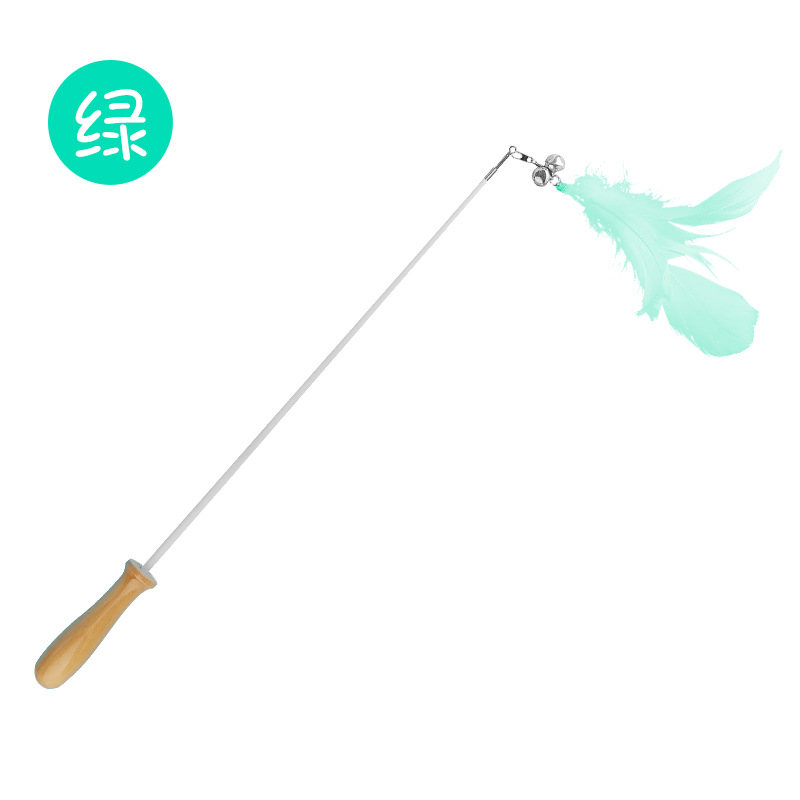 고양이 장난감 깃털 망원경 고양이 테이 나무 손잡이 벨 사운드 교체 헤드 바이트 저항하는 애완 동물 고양이 용품스토어 가기
