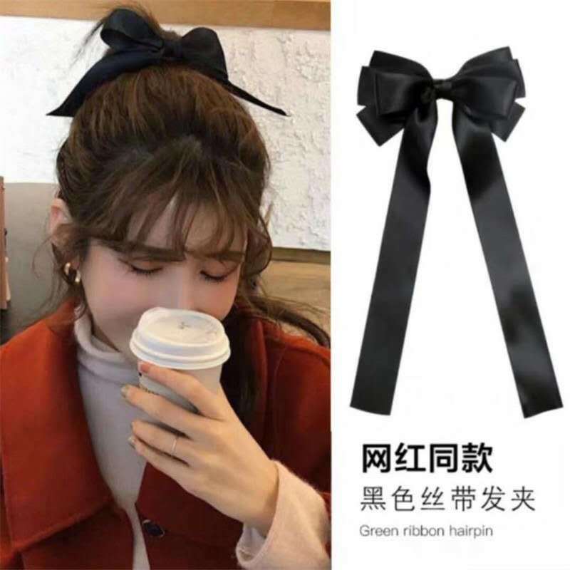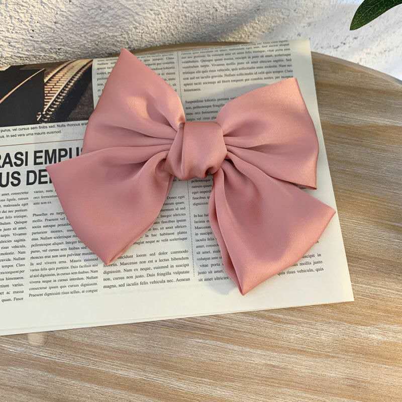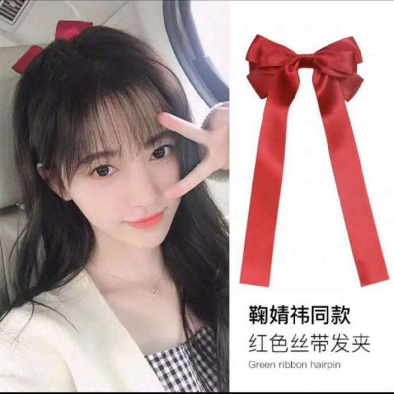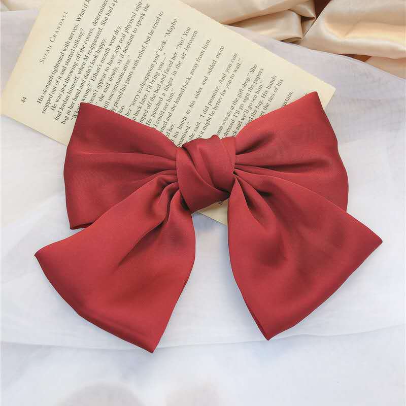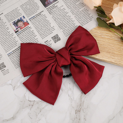 韩版潮流酒红色仙女蝴蝶结发夹绸缎后脑勺弹簧夹女式散装发饰