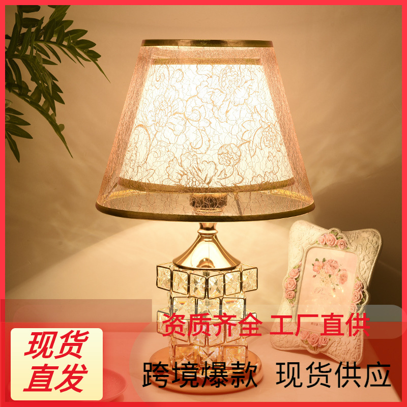 유럽 스타일의 크리스탈 테이블 램프 침실 침실 램프 가정용 간단한 현대 따뜻한 로맨틱 웨딩 인 침대 옆 테이블 램프