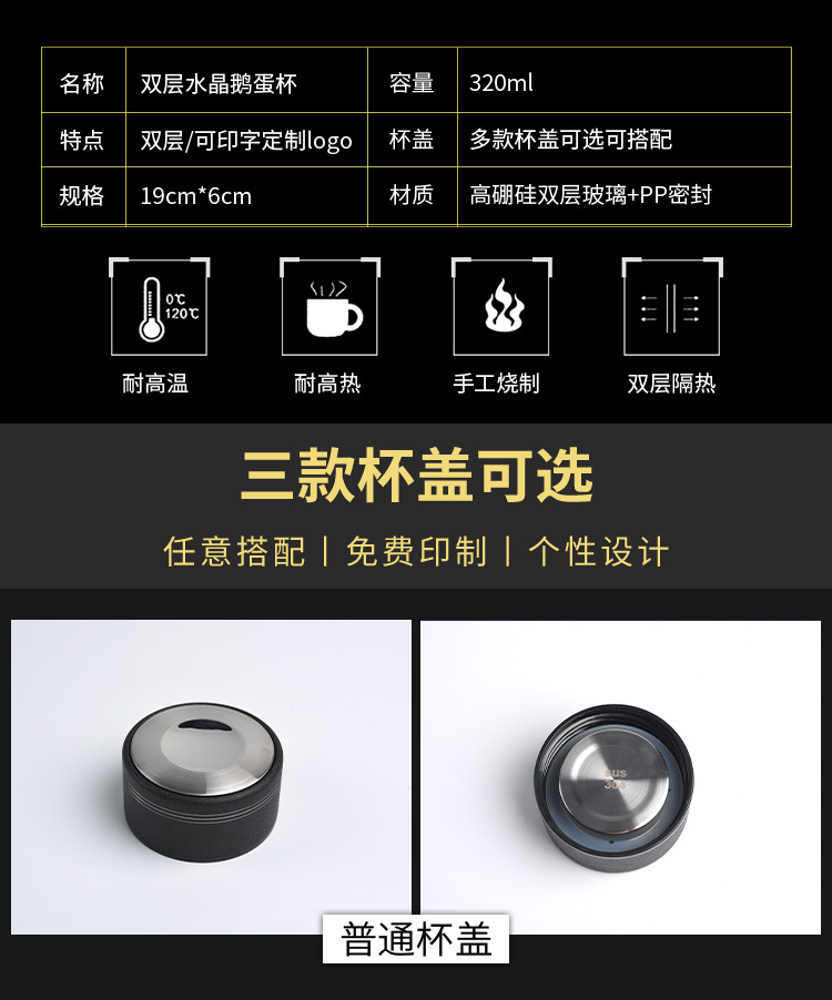 도매 이중층 유리 맞춤형 로고 자동차 컵 두꺼운 찻잔 선물 광고 컵 거위 달걀 컵 인쇄