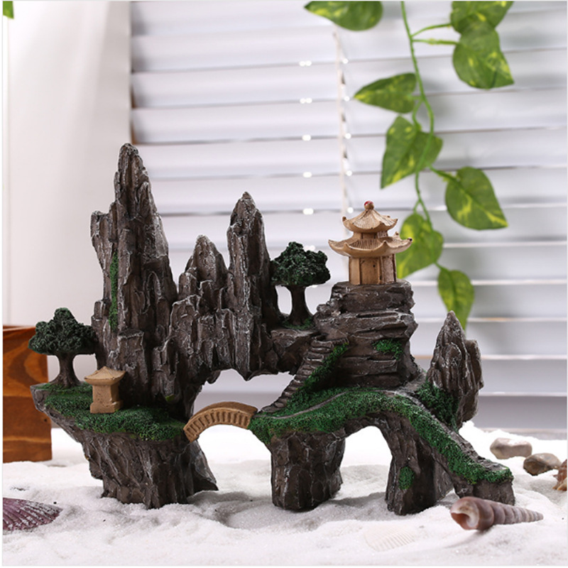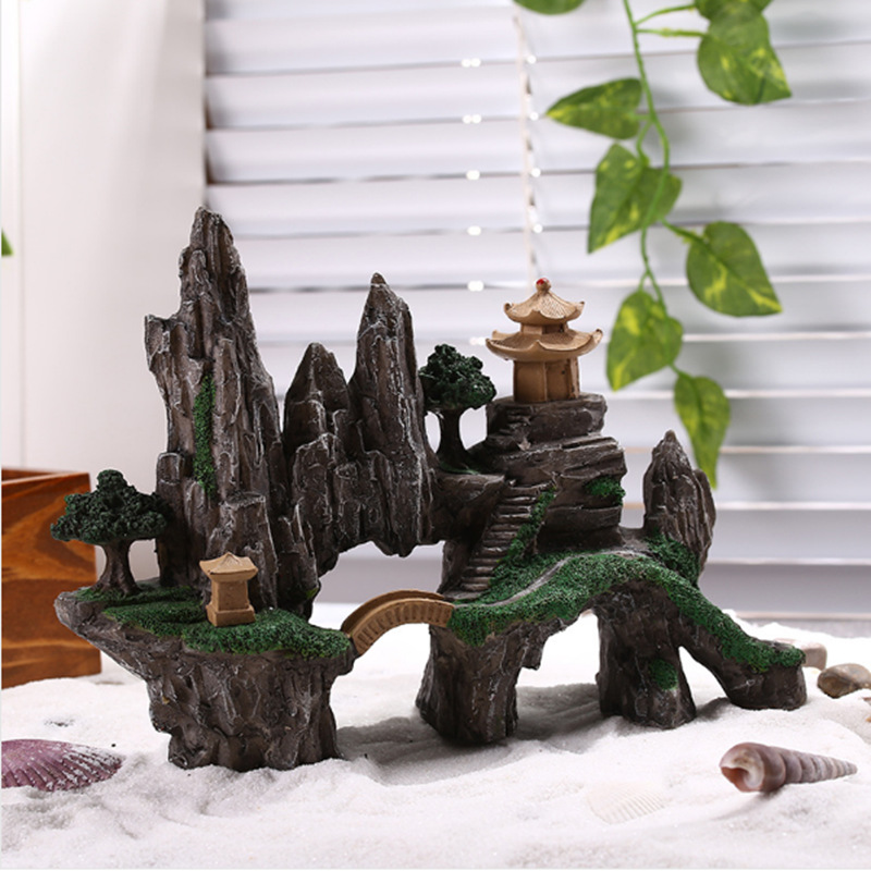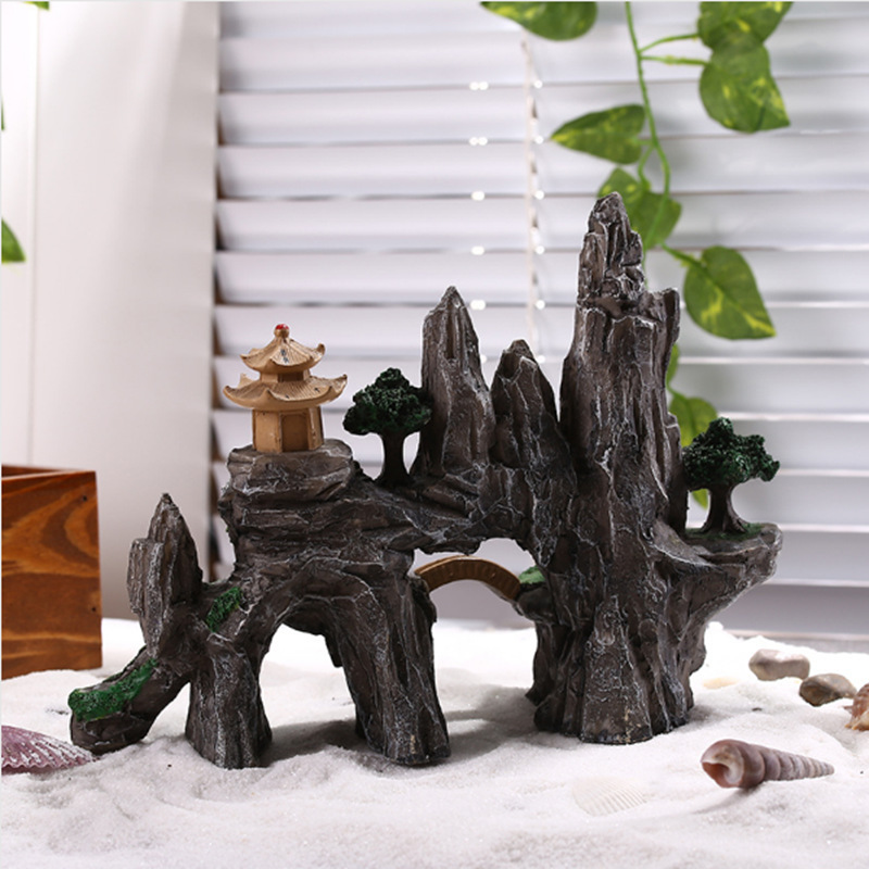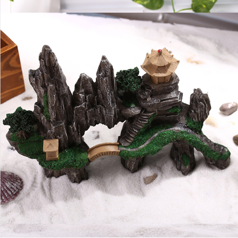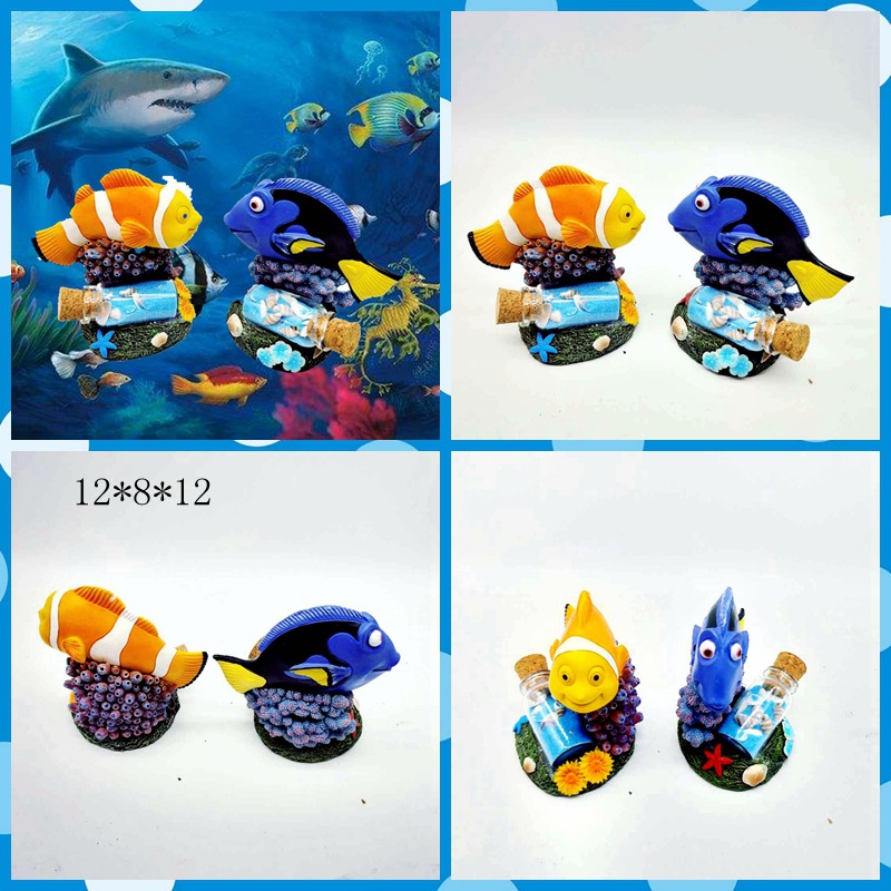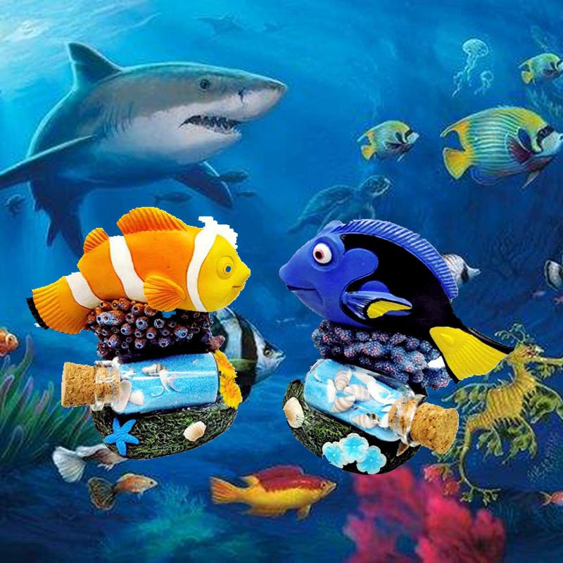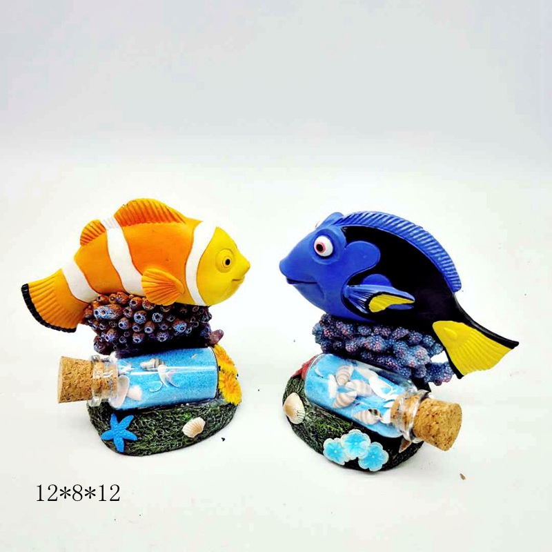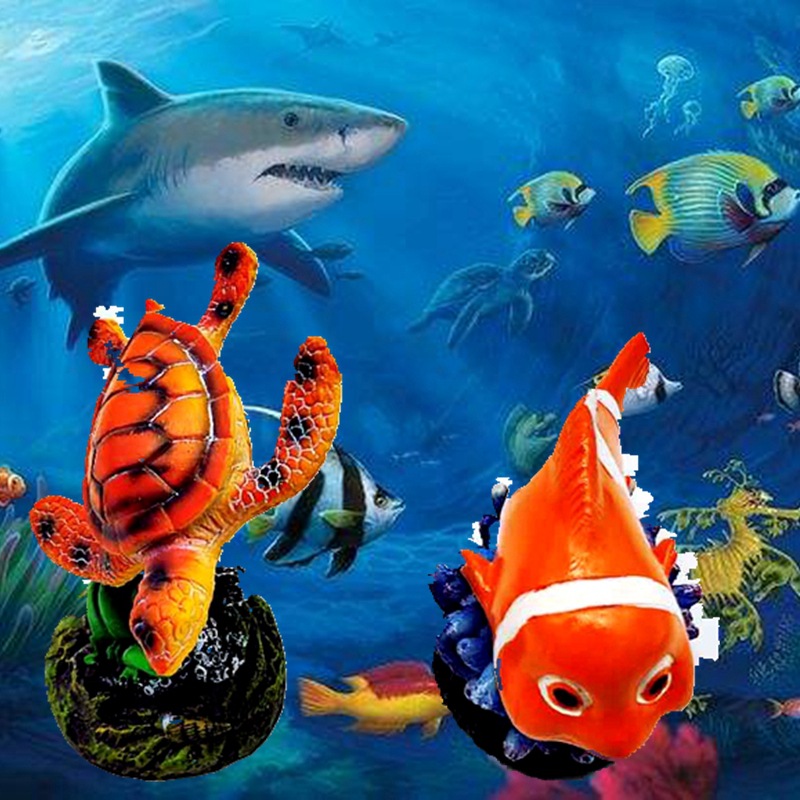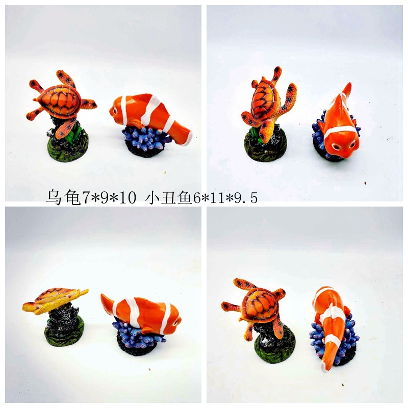 귀여운 수족관 모형, 창의적인 어항 미니어처 장식, 레진 가짜 산, 거북이, 광대 물고기, 산호 장식품스토어 가기