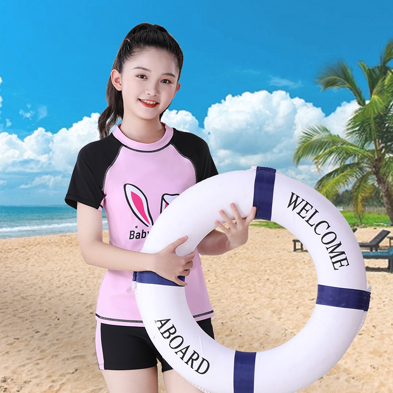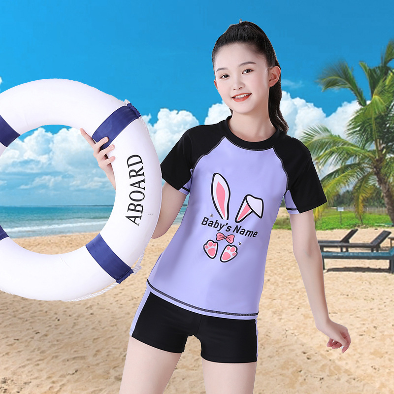 나베이 미소녀 분리형 수영복 큰 아이들 만화 토끼 중학생 수영복 중고등학교 수영 훈련용 분리형스토어 가기