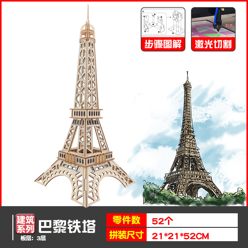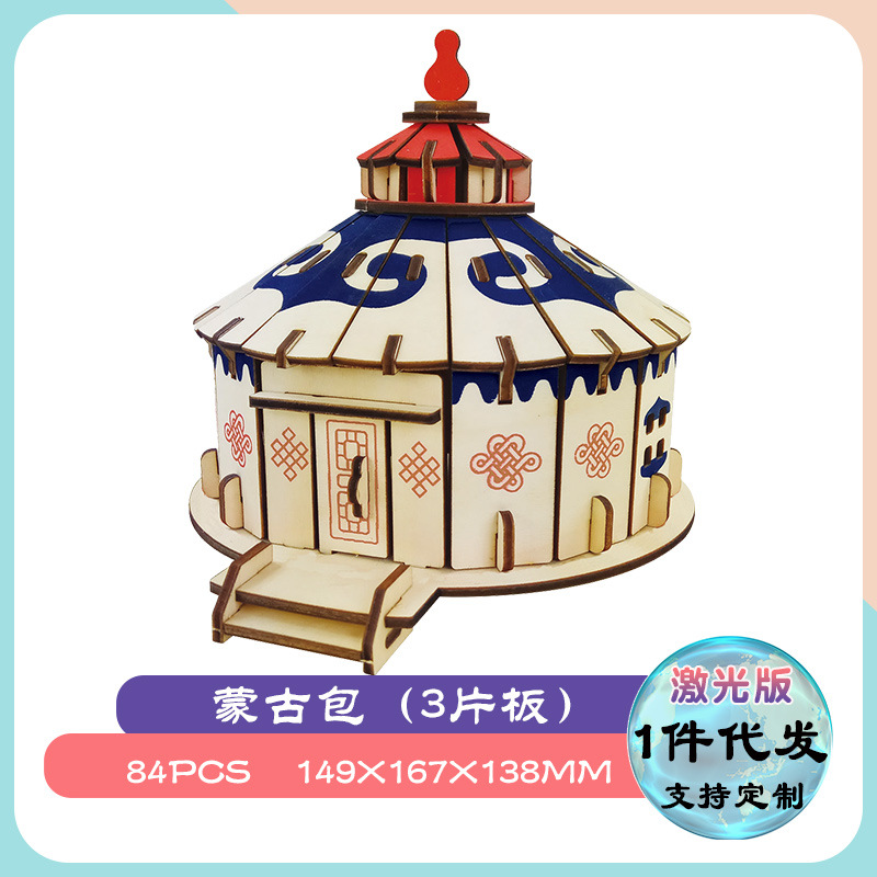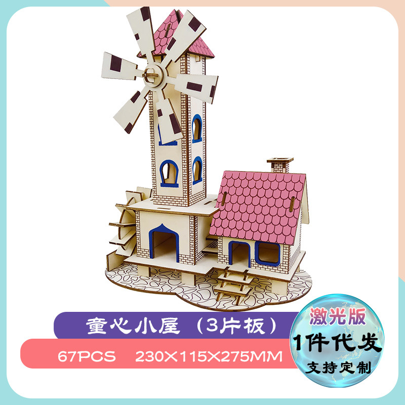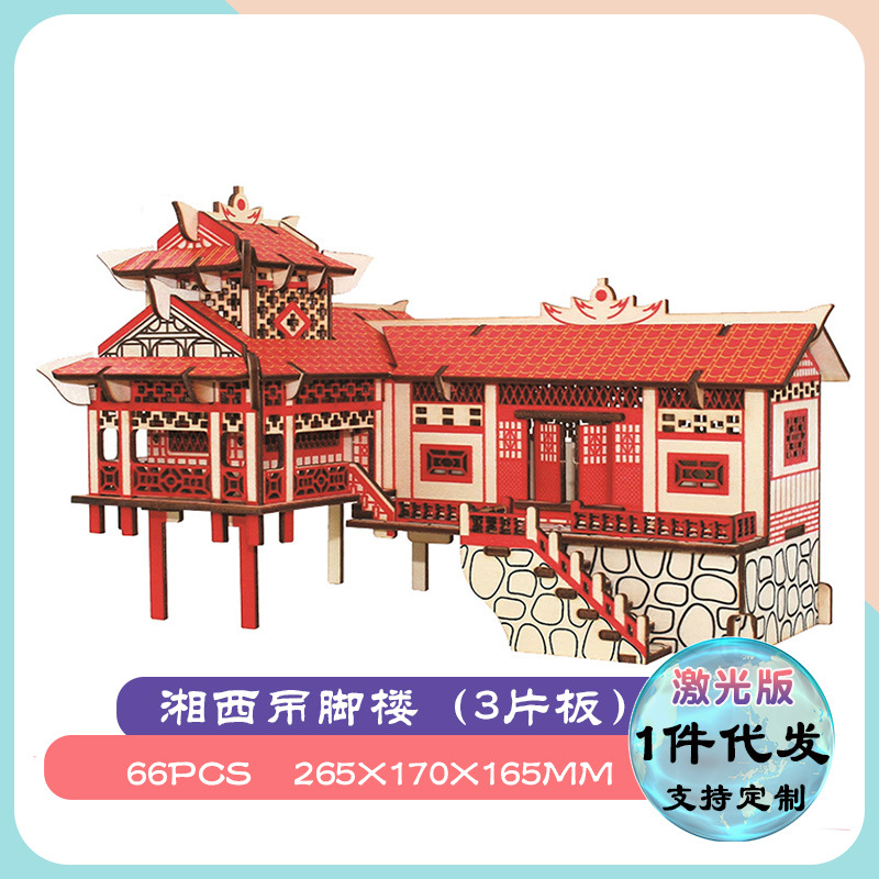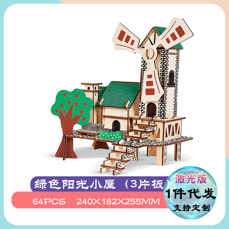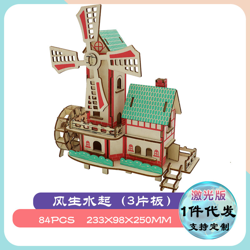 3diy 나무 입체 퍼즐 실속 공급 뜨거운 판매 실속 목재 시뮬레이션 모델 어린이 교육 완구 도매스토어 가기