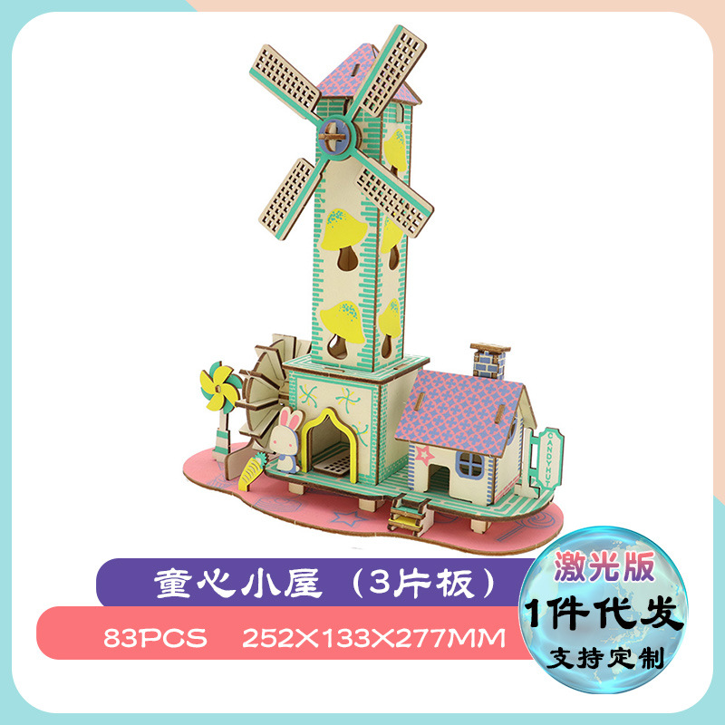 3diy 나무 입체 퍼즐 실속 공급 뜨거운 판매 실속 목재 시뮬레이션 모델 어린이 교육 완구 도매