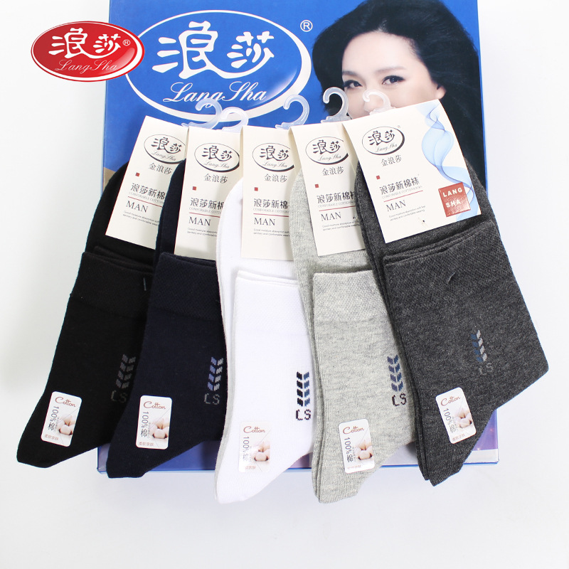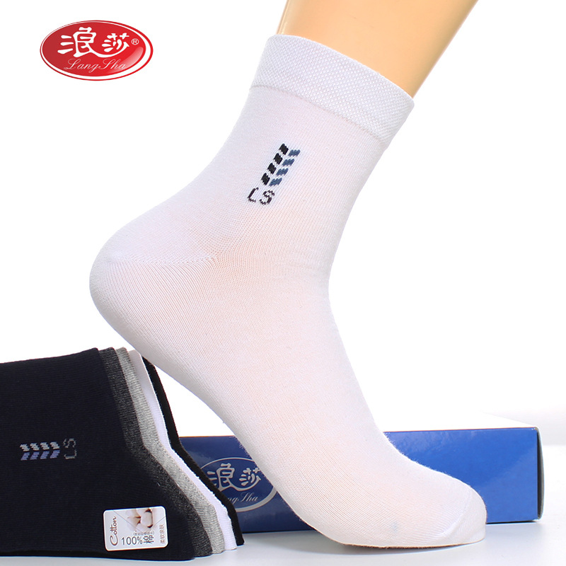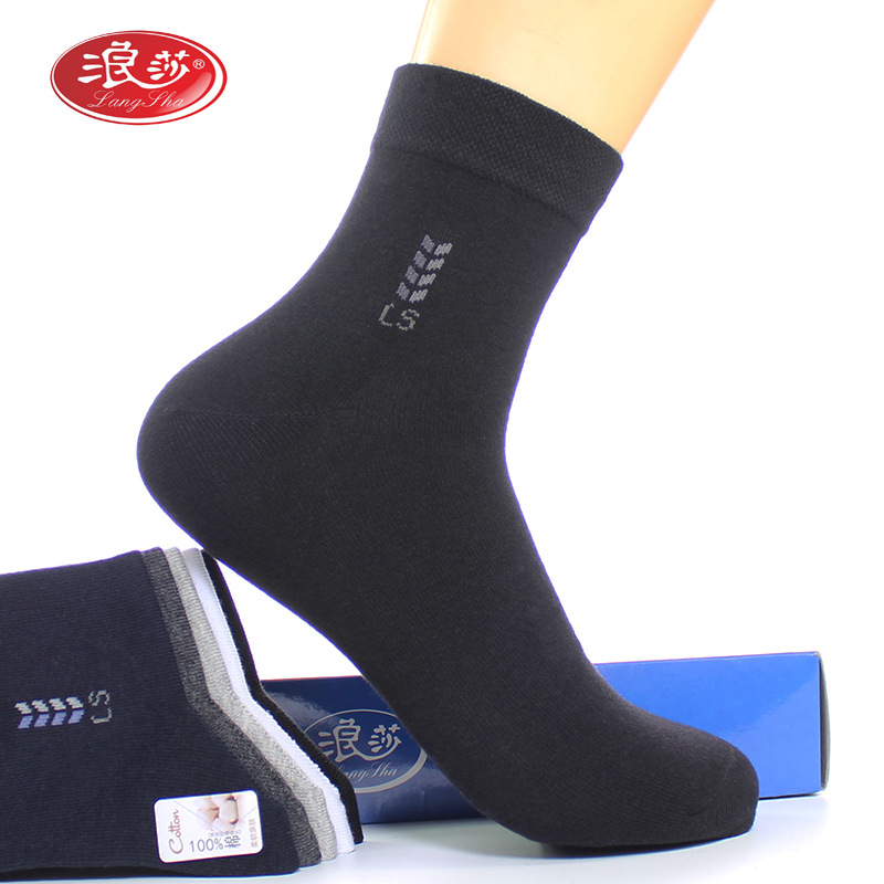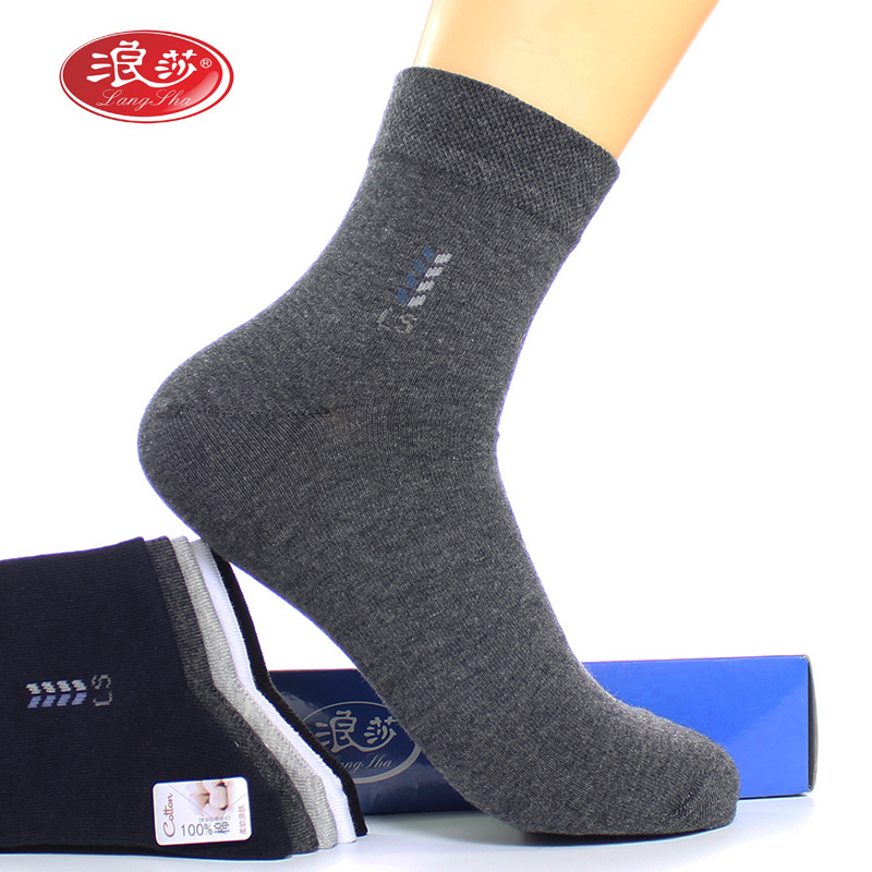 Longsha 면 남성 양말 봄과 가을 땀 흡수 비즈니스 양말 가을과 겨울 중간 두께 면 중간 튜브 양말 남성용 면 양말