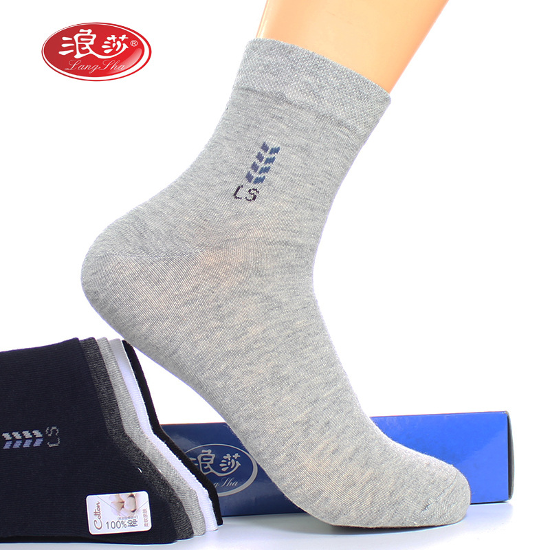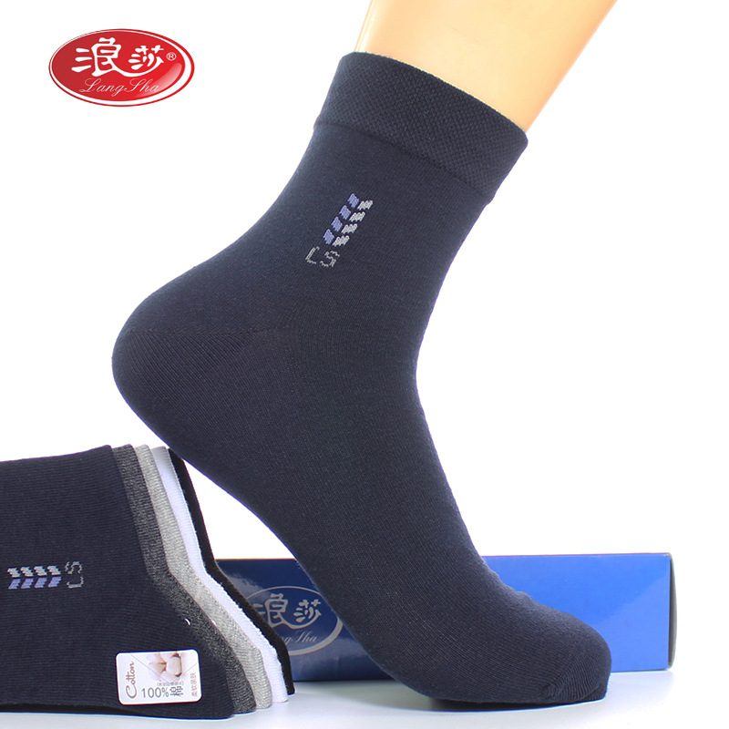 Longsha 면 남성 양말 봄과 가을 땀 흡수 비즈니스 양말 가을과 겨울 중간 두께 면 중간 튜브 양말 남성용 면 양말스토어 가기