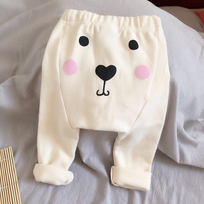 플리스 안감 한국 스타일 유아용 라지 PP 레깅스 남아 여아 귀여운 곰돌이 디자인 하이웨이스트 팬츠 (중소 아동용)