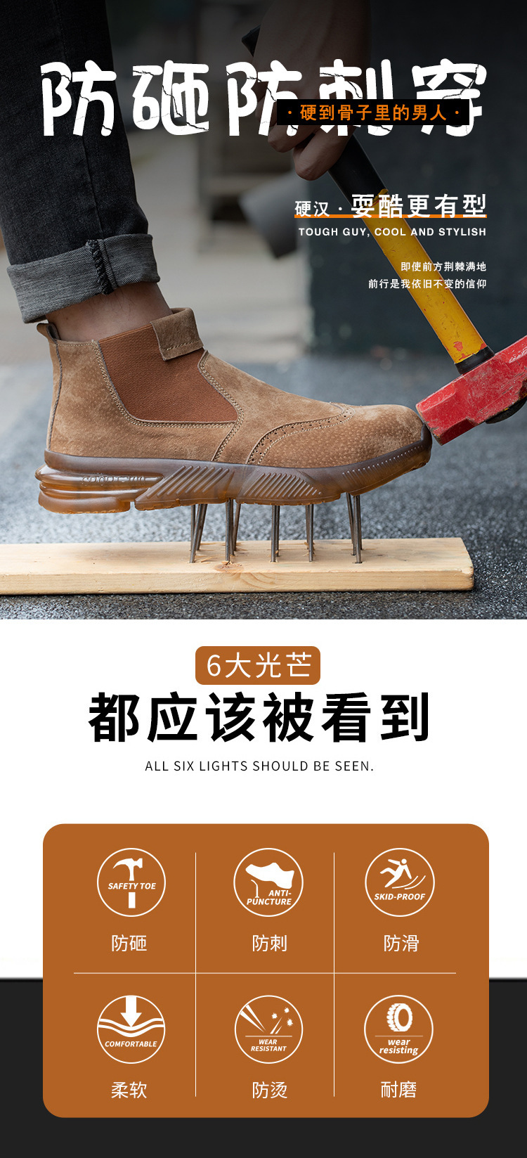 안티 벨벳 가죽 작업 안전 신발 남성용 내마모성 안전 신발 튀김 방지 핫 사이트 충돌 방지 및 찔림 방지 작업 신발스토어 가기
