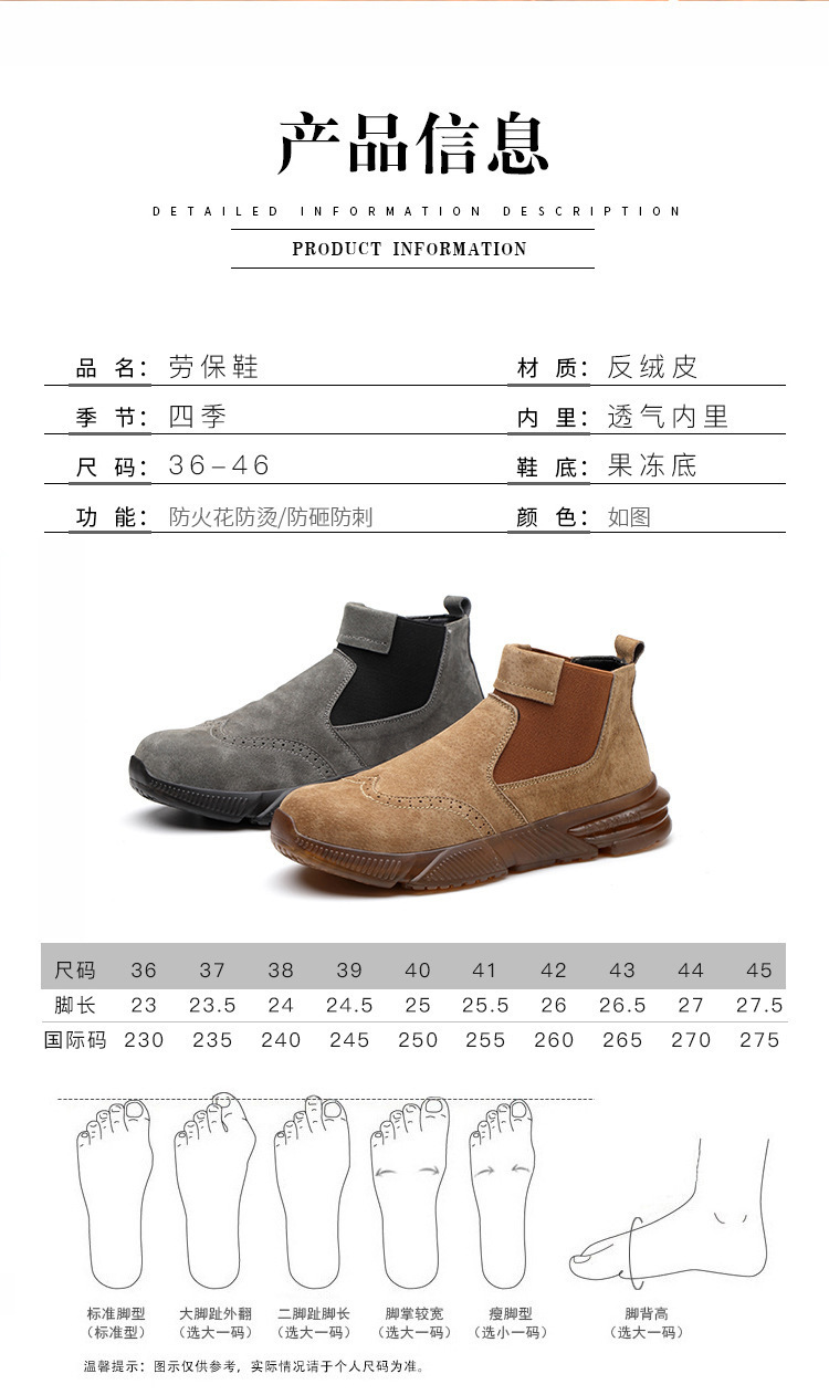 안티 벨벳 가죽 작업 안전 신발 남성용 내마모성 안전 신발 튀김 방지 핫 사이트 충돌 방지 및 찔림 방지 작업 신발