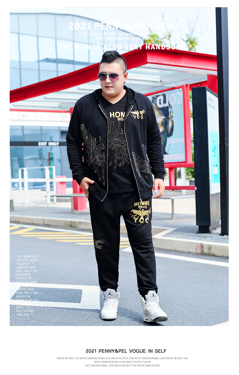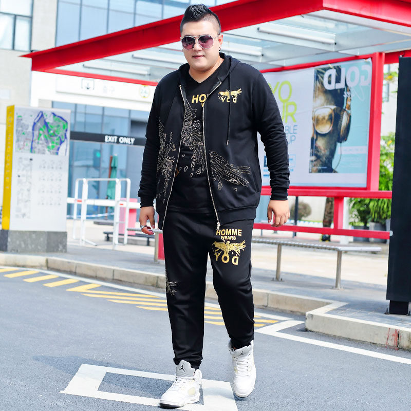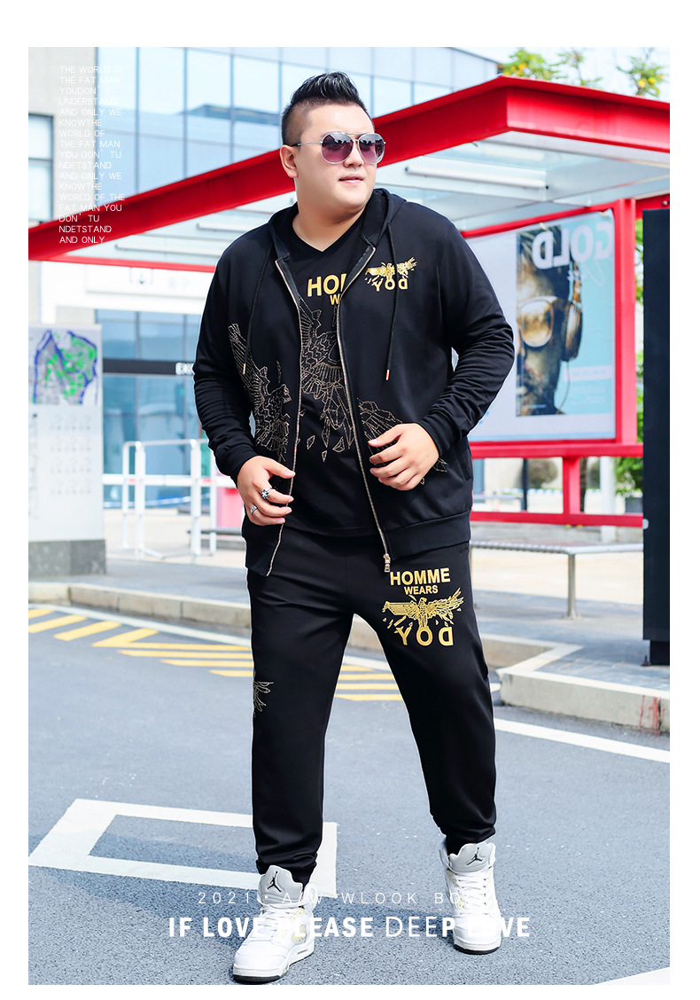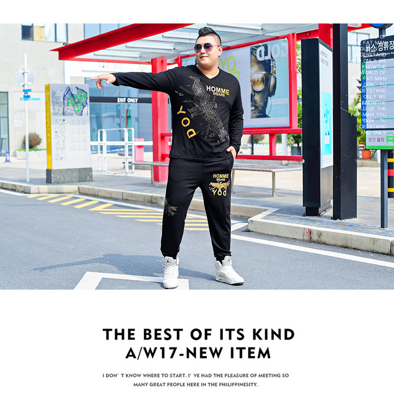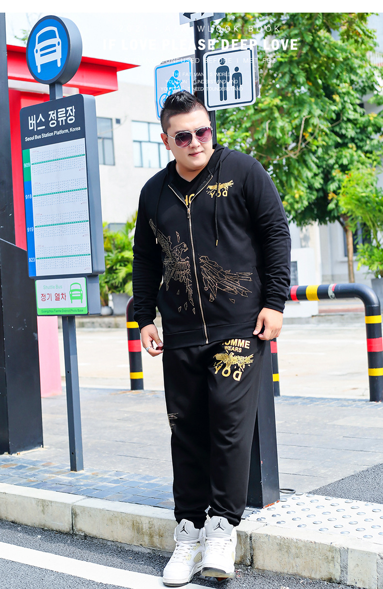 뚱뚱한 남자 남자의 초대형 캐주얼 스포츠 세트 뚱뚱한 남자 스웨터 바지 티셔츠 가을과 겨울 3 종 세트 초대형스토어 가기