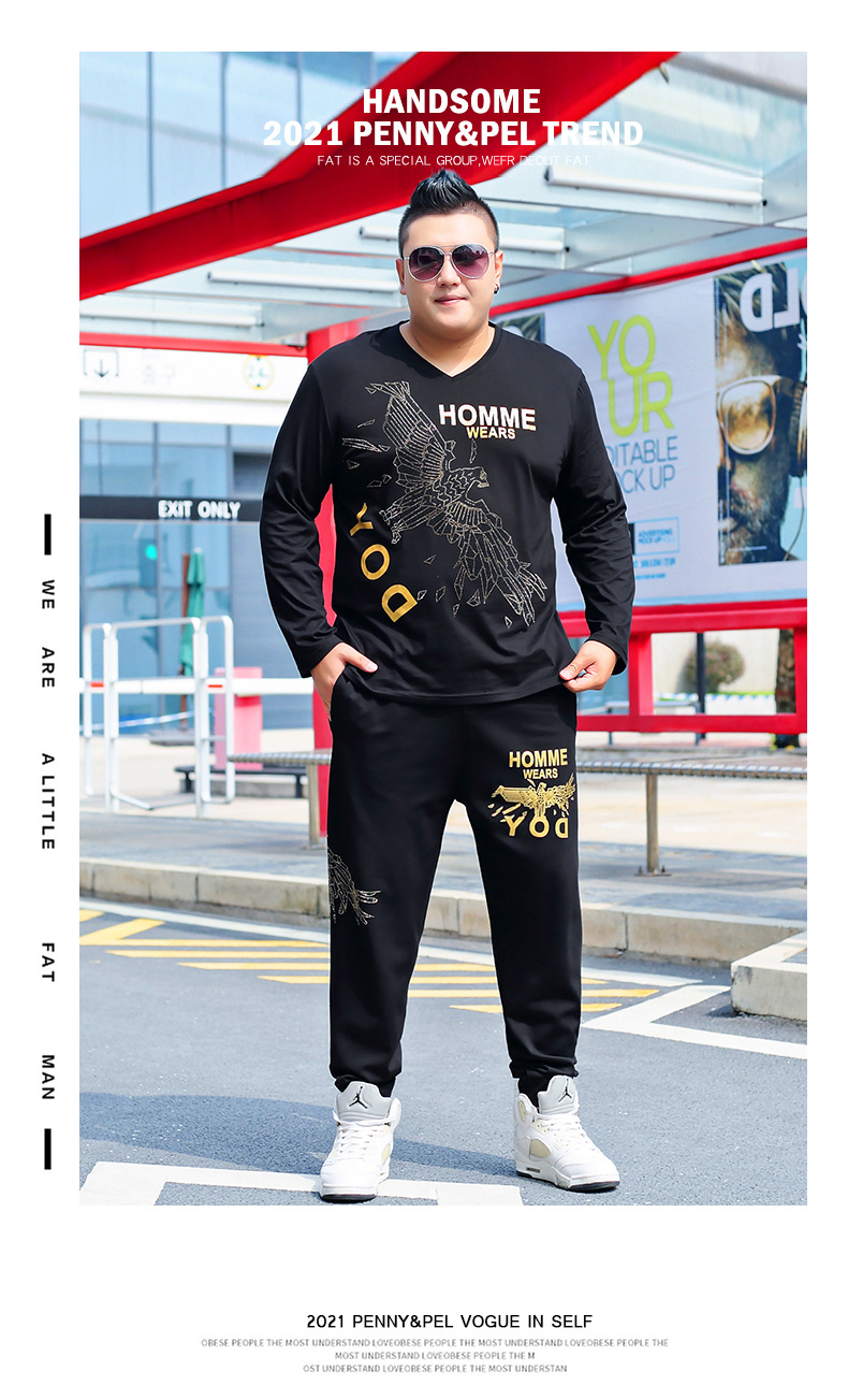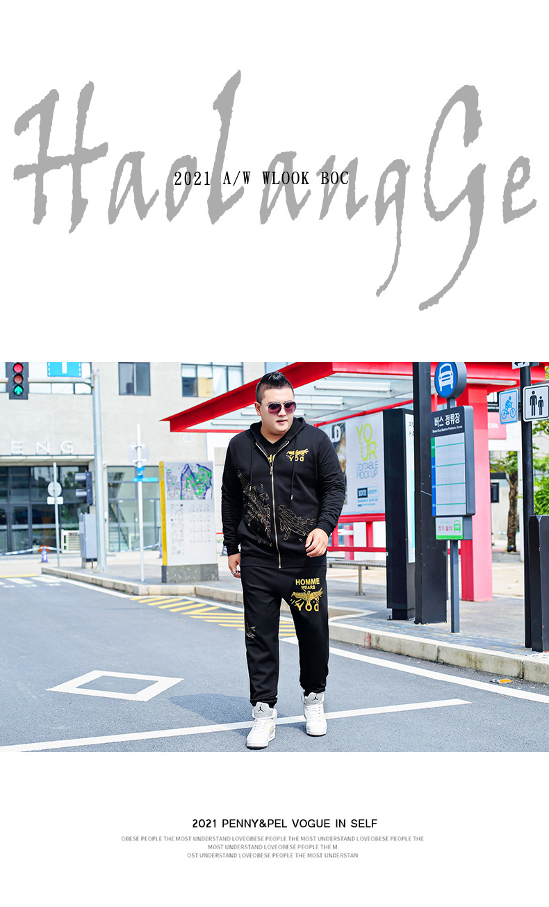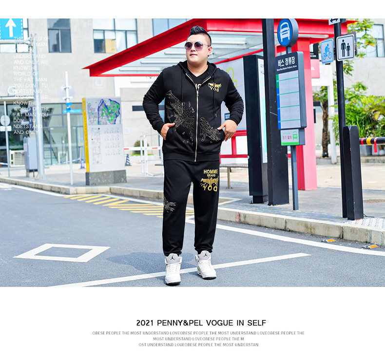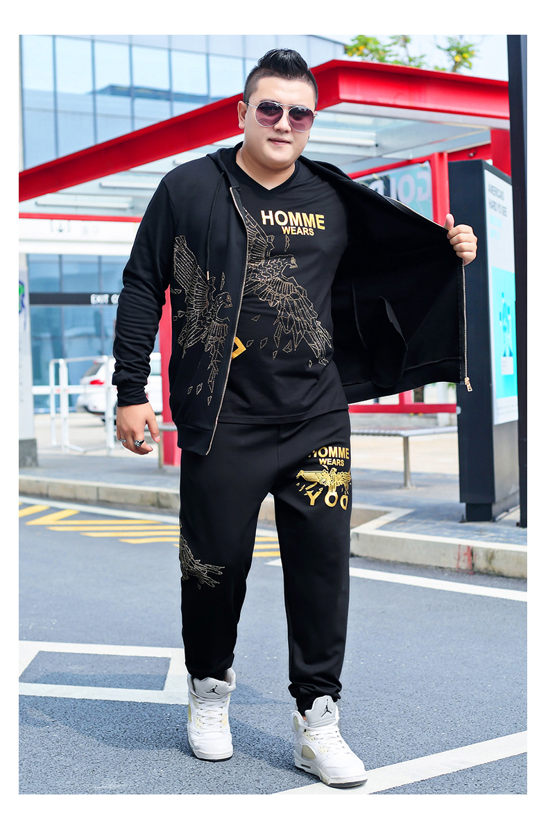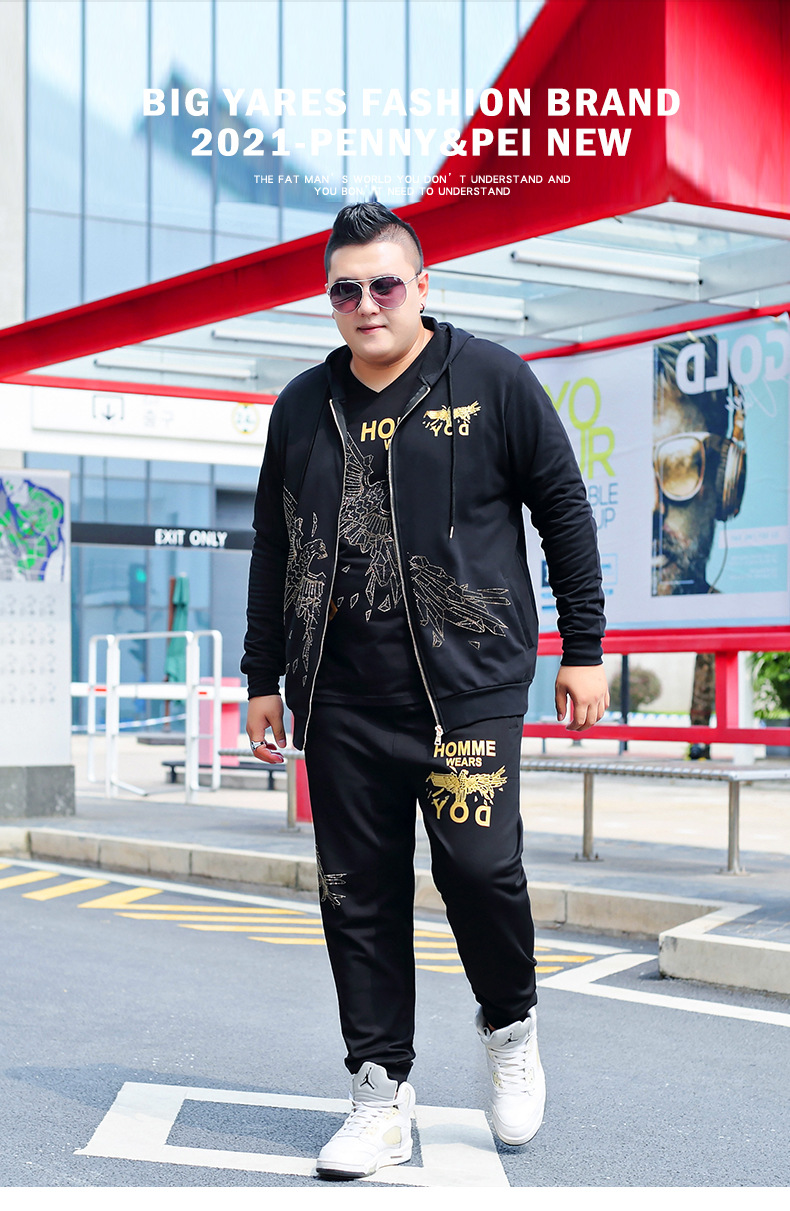 뚱뚱한 남자 남자의 초대형 캐주얼 스포츠 세트 뚱뚱한 남자 스웨터 바지 티셔츠 가을과 겨울 3 종 세트 초대형스토어 가기