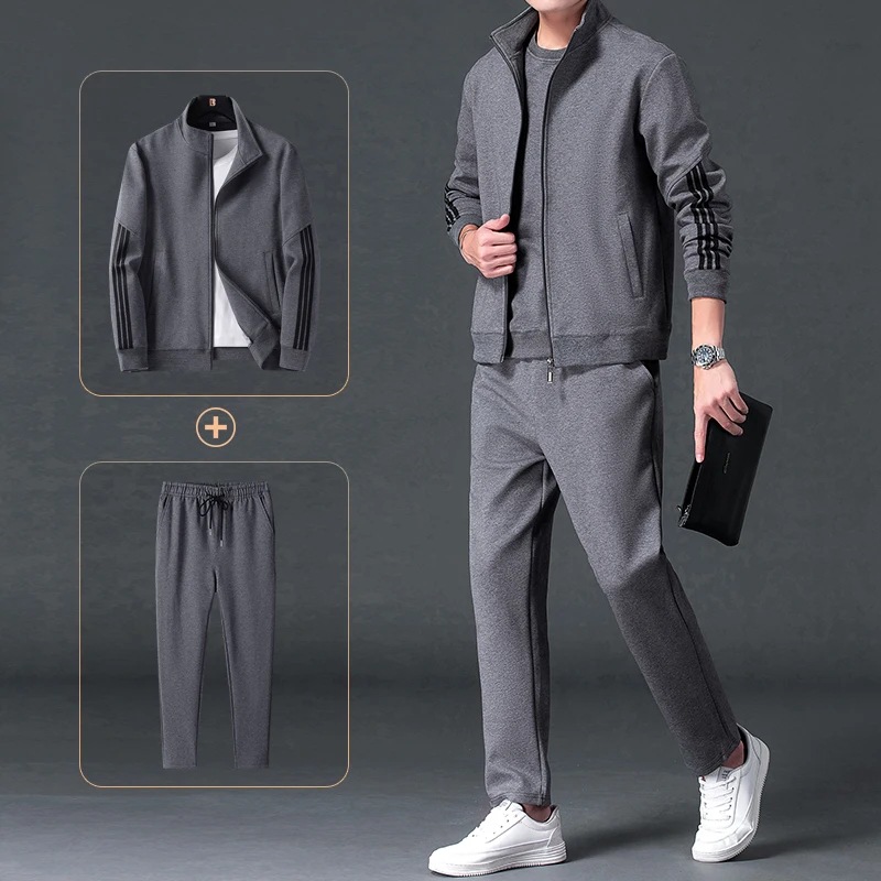 남성용 크로스보더 스포츠웨어 세트, 봄/가을용 루즈핏 스탠드업 칼라 재킷, 플러스 사이즈 일자핏 바지, 투피스 세트, 남성용 스웨트셔츠, 수출용스토어 가기