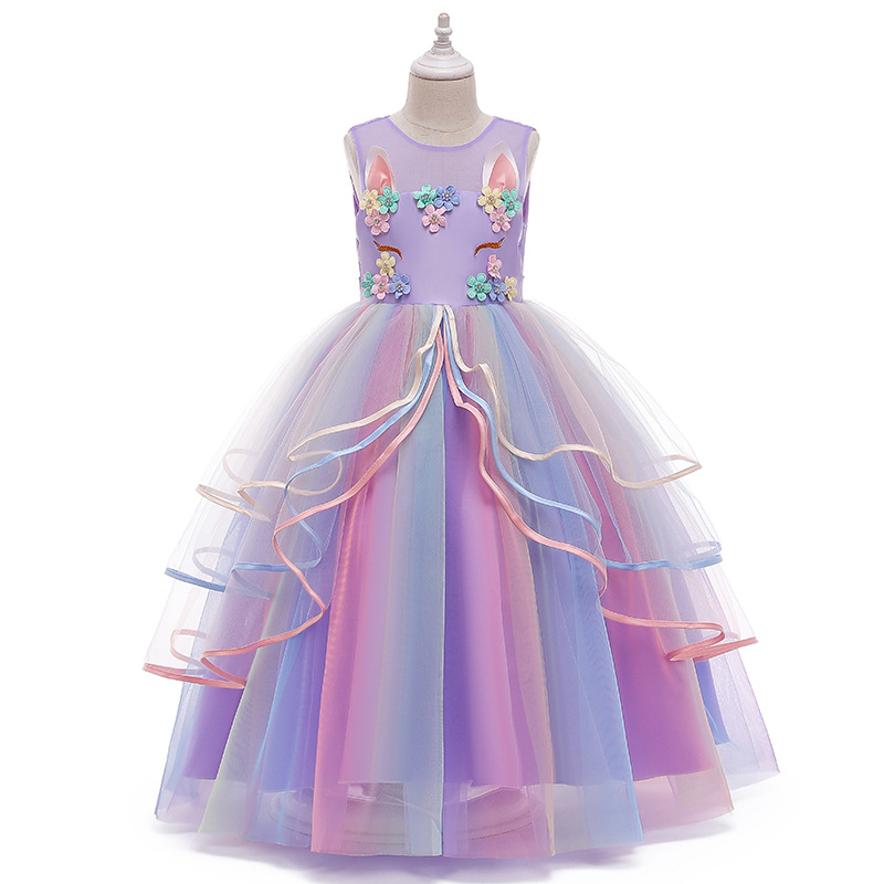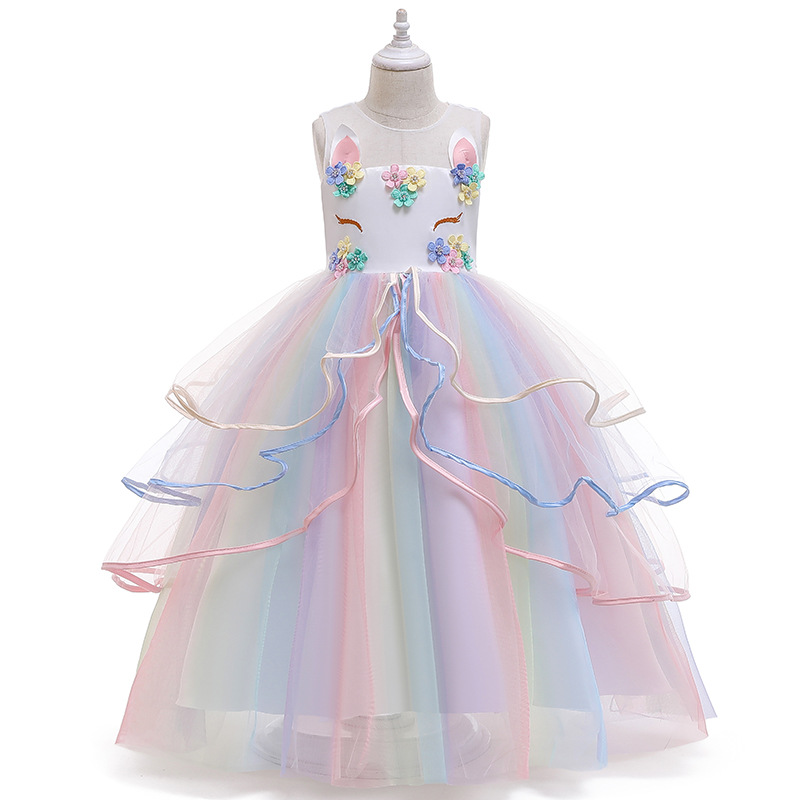 2021 새로운 소녀 원피스 공주 원피스 유니콘 원피스 아마존 어린이 원피스 공장 도매스토어 가기