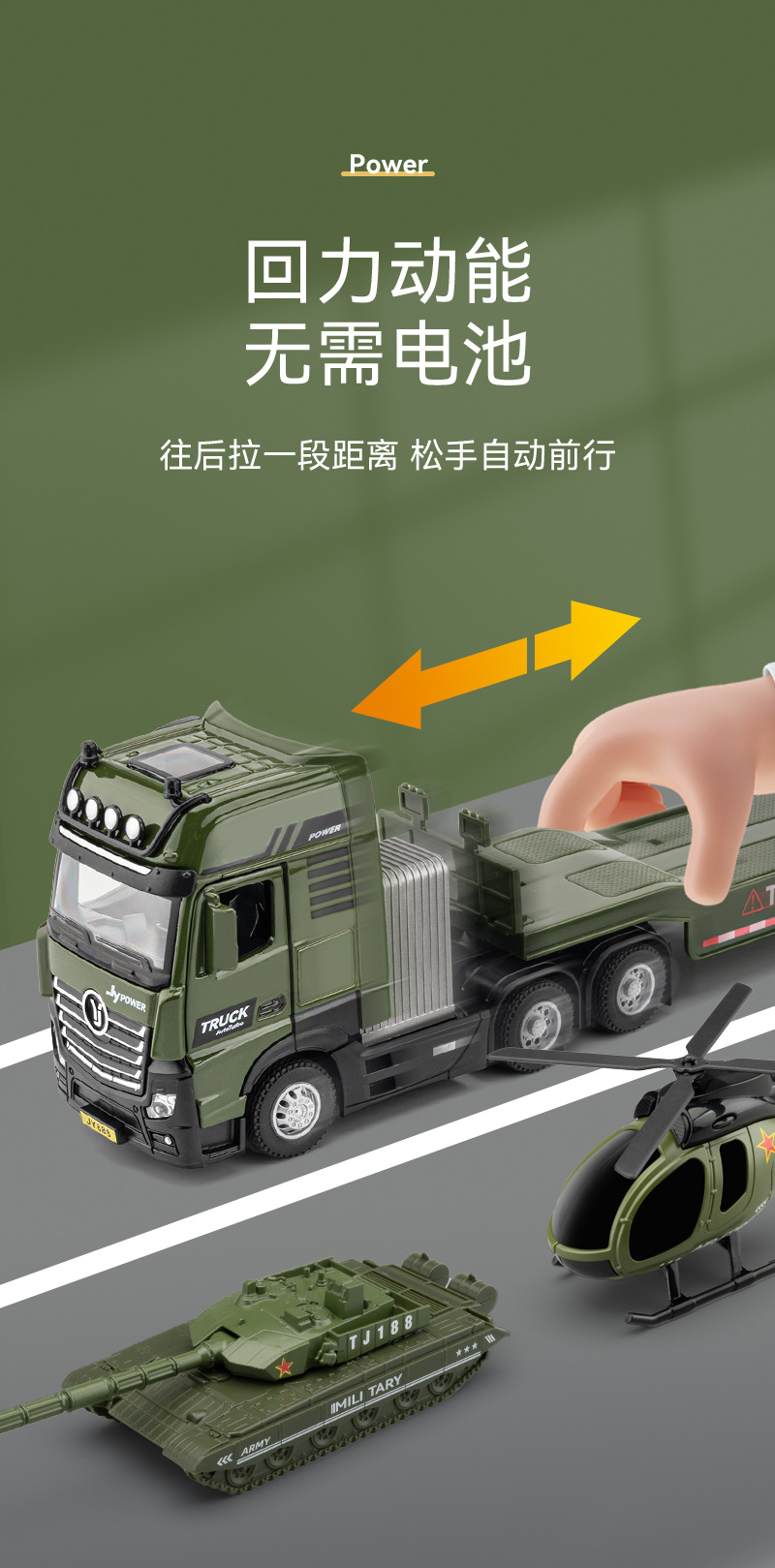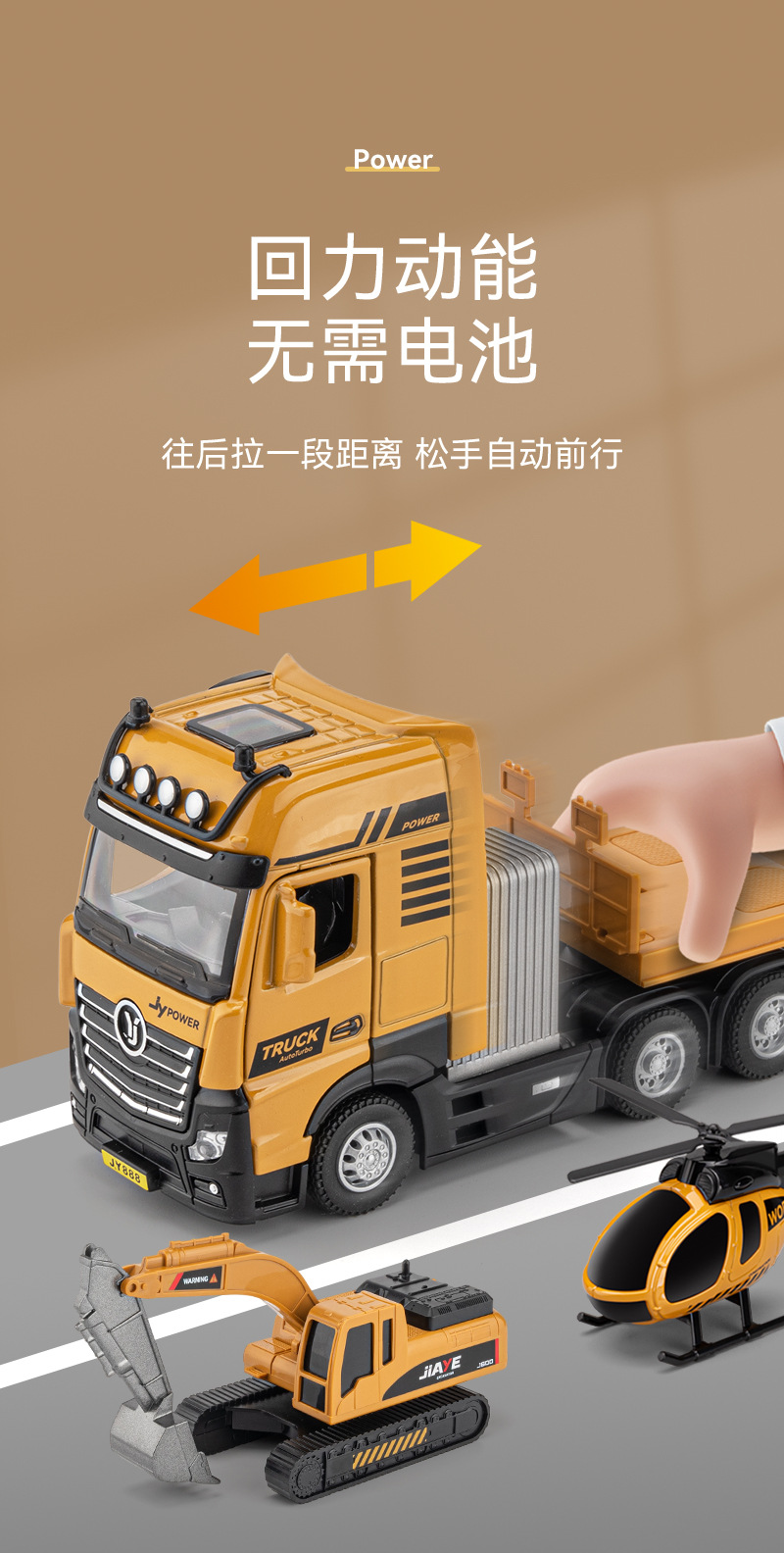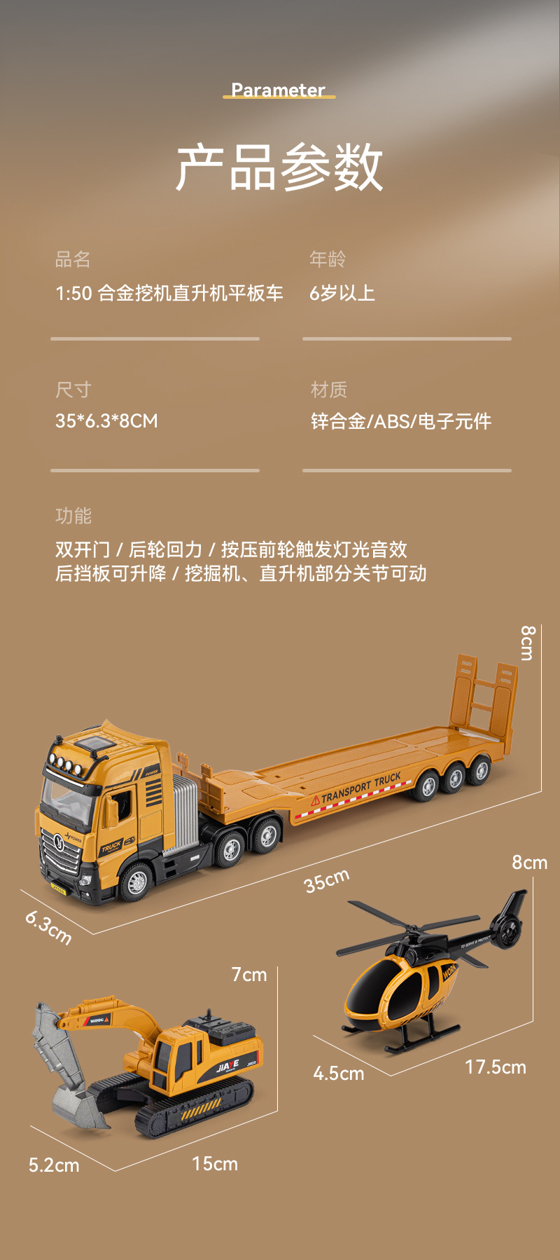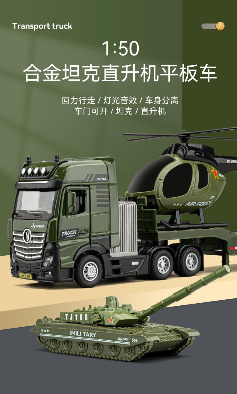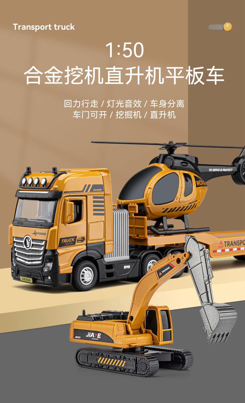 • 50208 1:50 합금 헬리콥터 공룡 평판 트럭