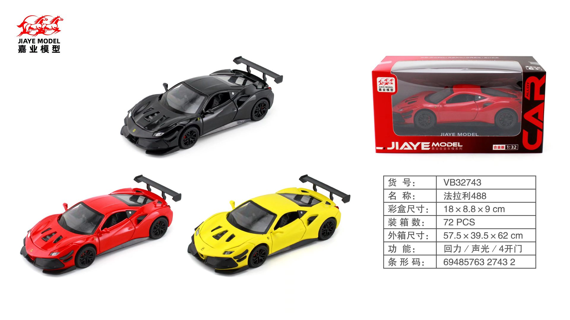 • 32743 페라리 488 1:32 [4 색 랜덤 헤어, 사운드 및 라이트 백]