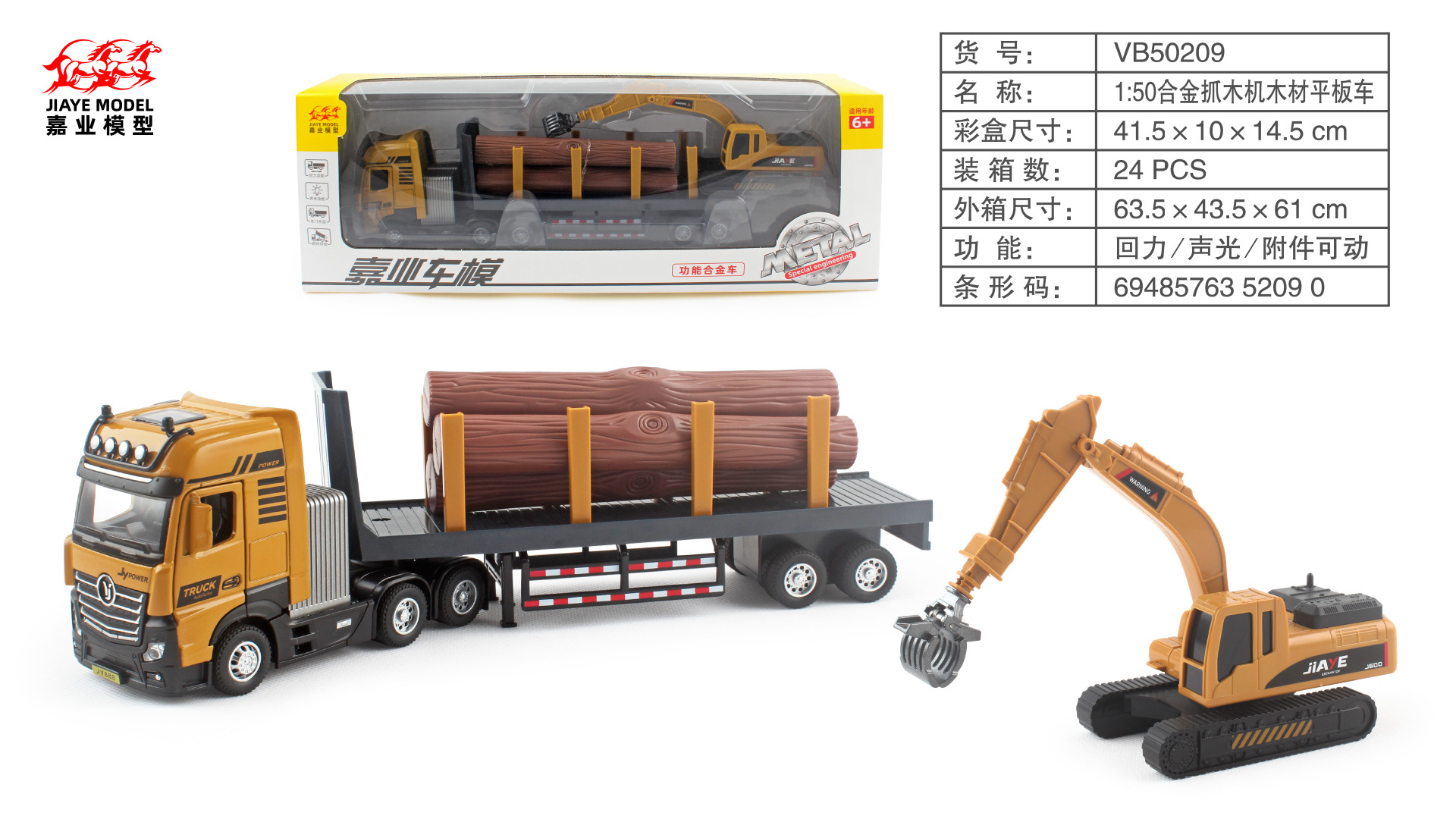 • 50209 합금 목재 그래버 목재 평판 트럭 1:50