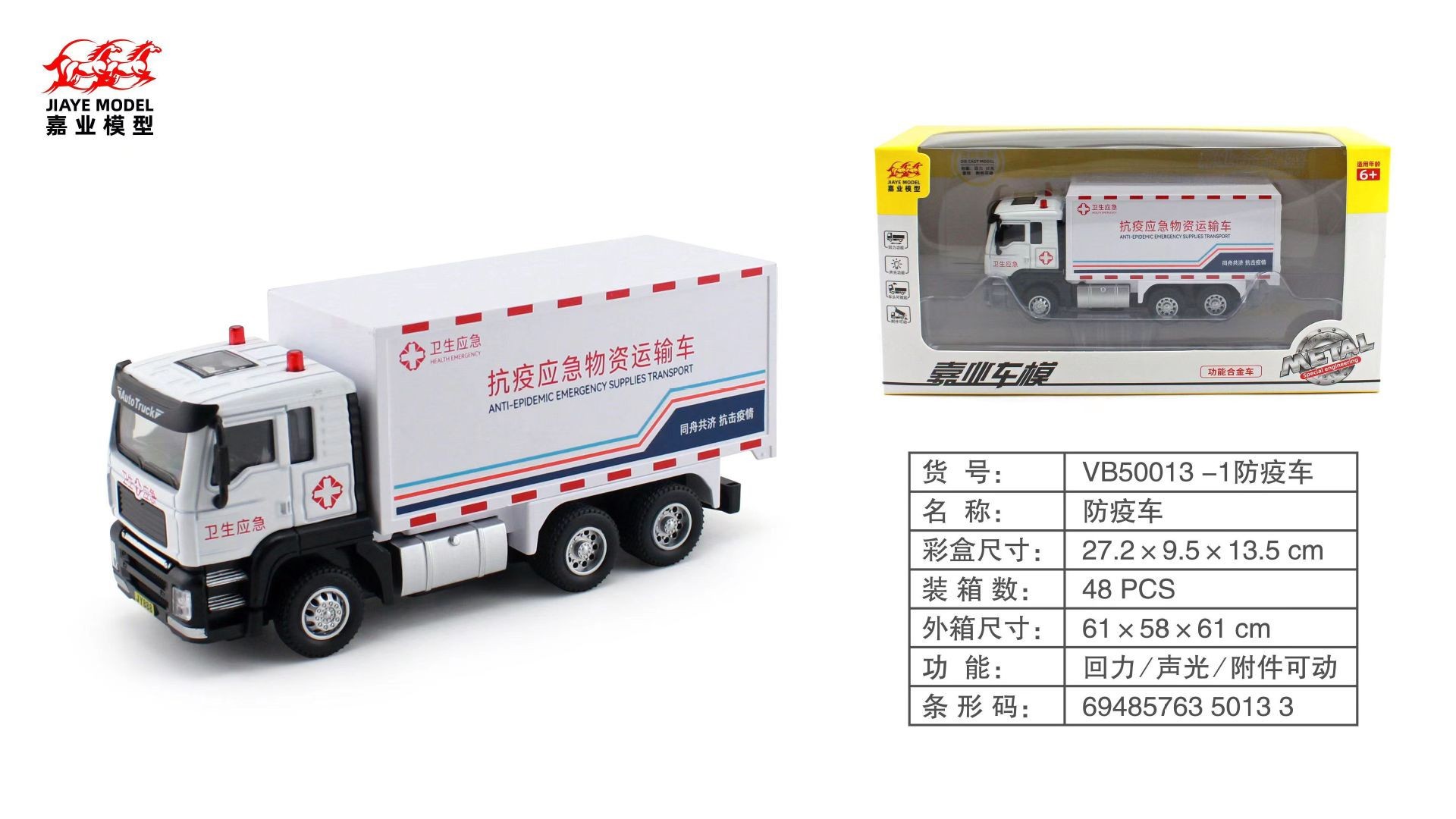 • 50013-1 전염병 예방 차량 흰색 1:50 전면 들어 올릴 수 있습니다, 소리와 빛의 반환 힘, 움직일 수있는 액세서리