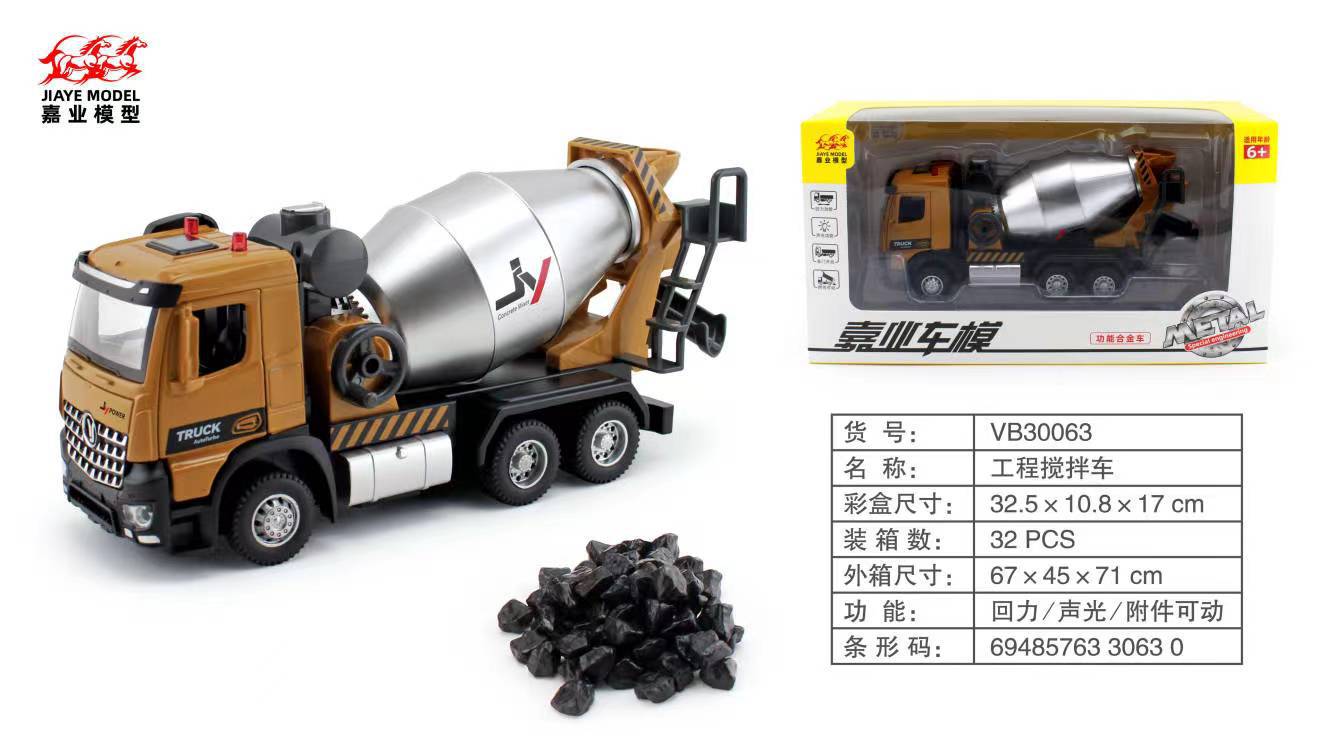 • 【인기 폭발】 30063 건설 믹서 트럭 1:30 스케일, 앞부분 개방 가능, 사운드 & 라이트, 풀백 기능, 부착물 가동