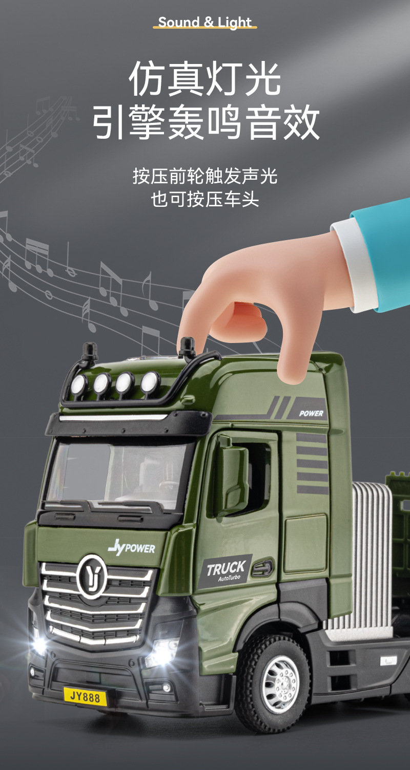 • 【인기 폭발】 50013 화물 컨테이너 트럭 1:50 스케일, 앞부분 개방 가능, 사운드 & 라이트, 풀백 기능, 부착물 가동