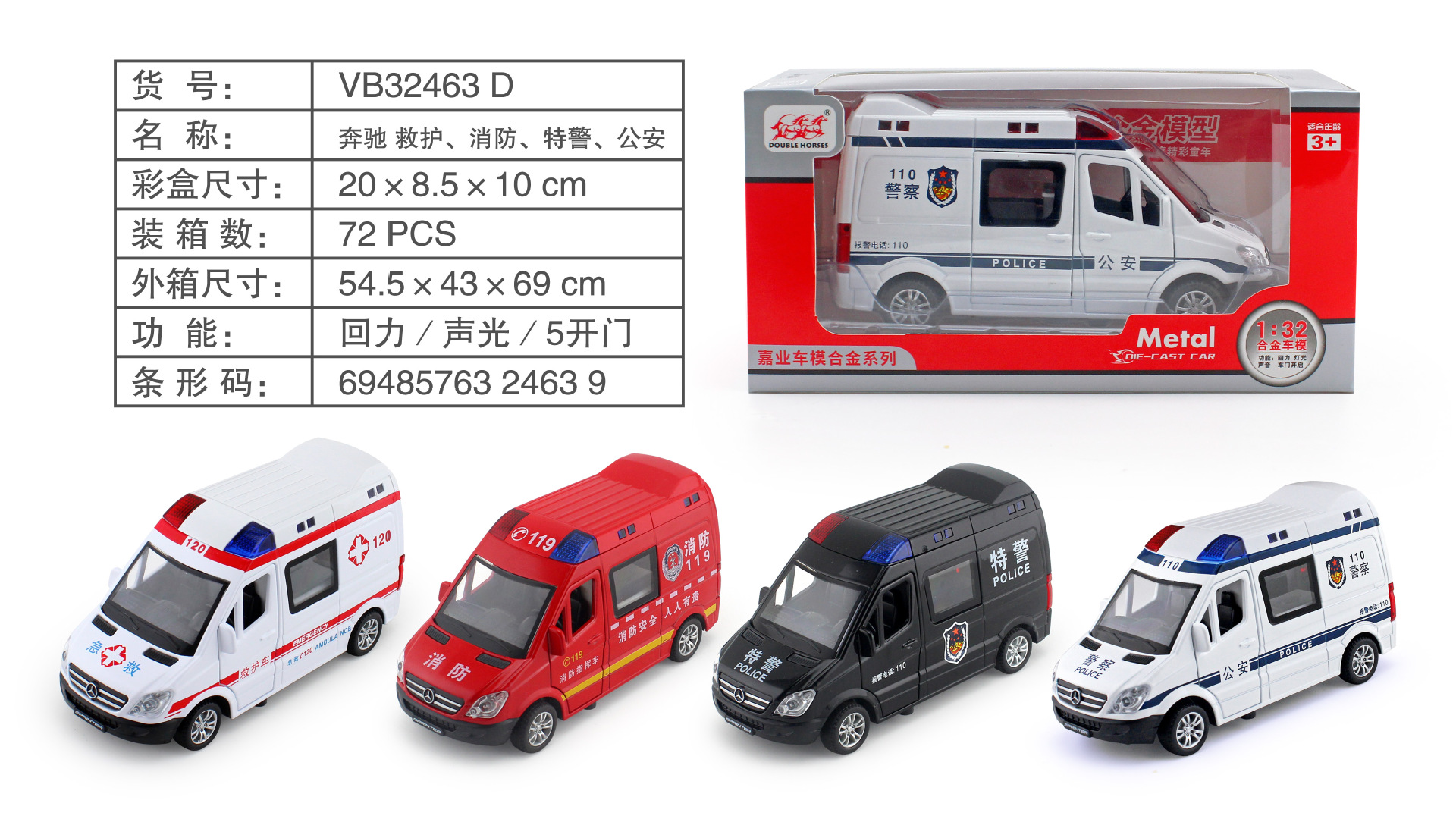 • 32463 D 전염병 예방 차량 1:32 [4가지 색상, 임의 색상]