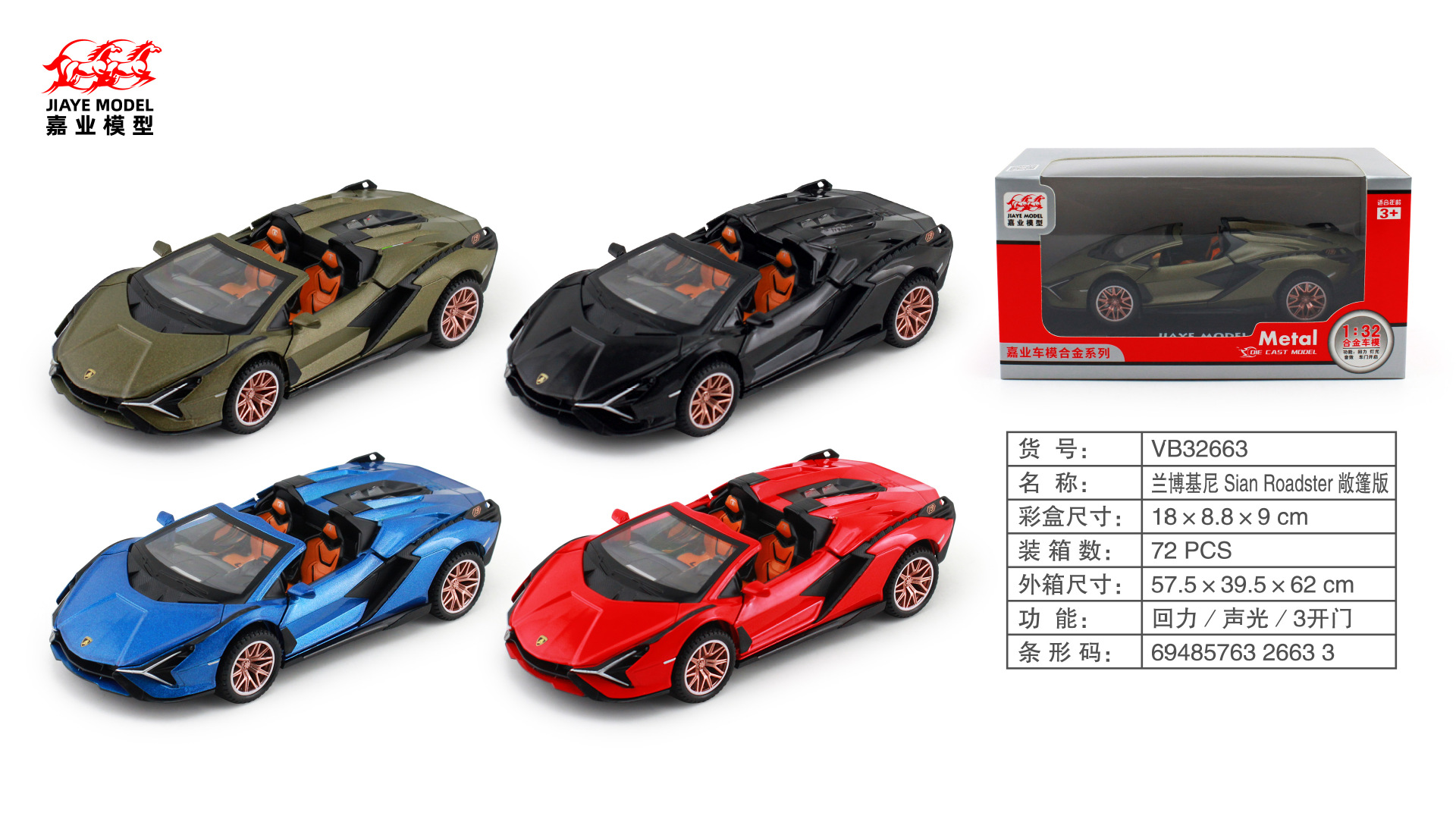 • 32583 람보르기니 하드탑 1:32 "3 색 랜덤]