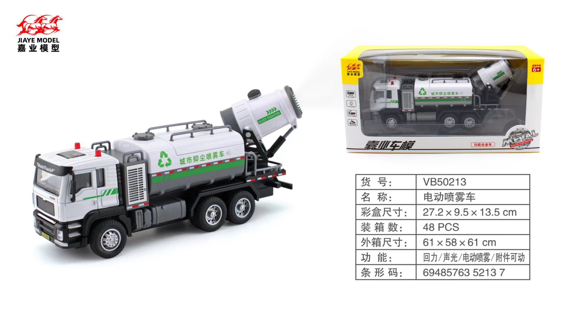 • 50213 먼지 억제 스프레이 카 1:50 [전면 왼쪽 및 오른쪽 문을 열 수 있으며 소리와 빛의 반환력, 액세서리를 이동할 수 있으며 스프레이 가능]]