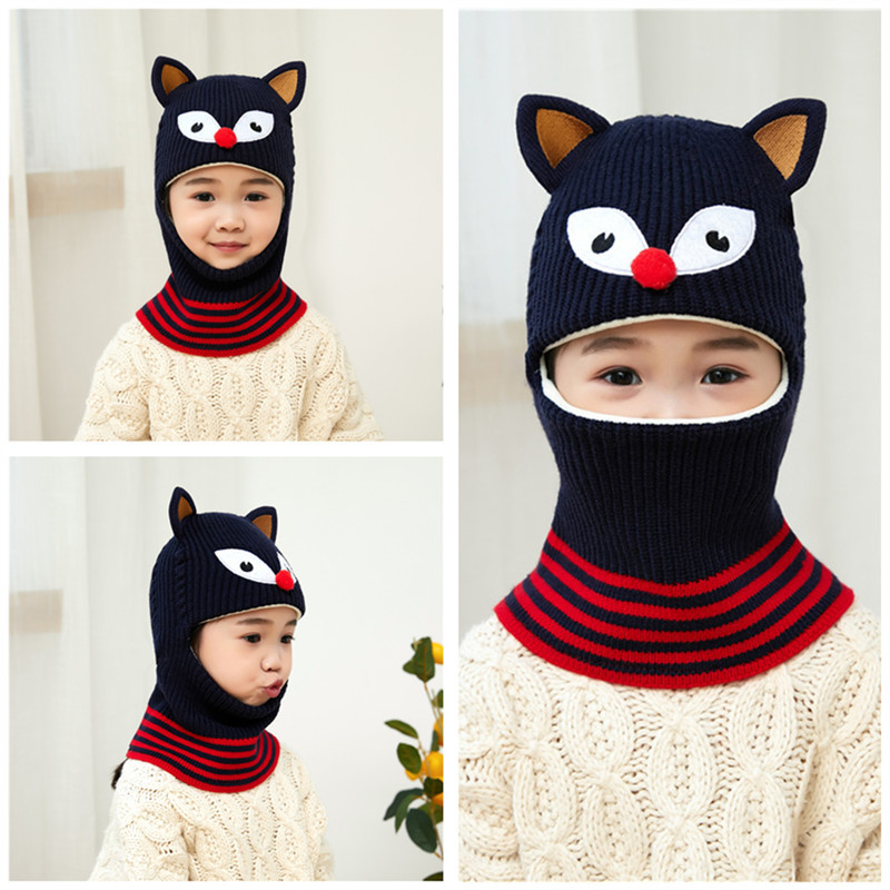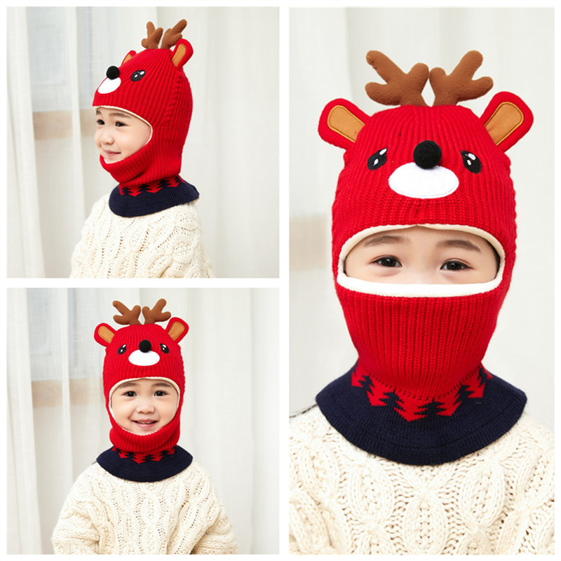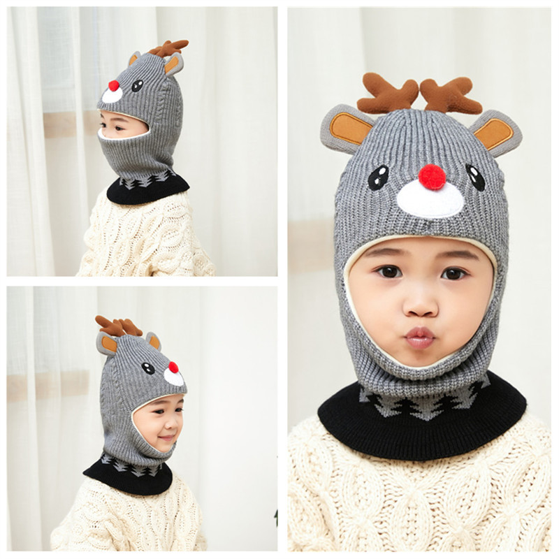 어린이 풀오버 모자 겨울 아기의 만화 새끼 사슴 방한 따뜻한 후드 스카프 통합 기모 어린이 모자