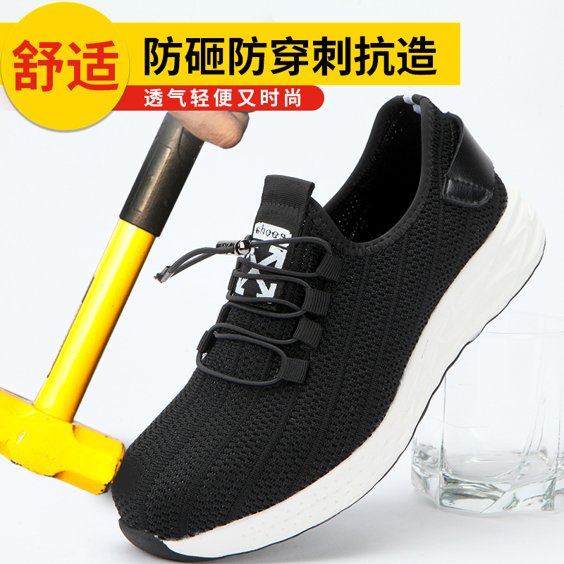 남성용 크로스보더 작업 보호화, 충격 방지, 펑크 방지, 통기성, 가볍고 편안한 자동 버클 신발끈, 작업 안전화
