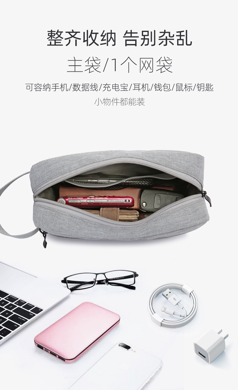 새로운 화장품 가방 저장 가방 휴대용 디지털 휴대 전화 헤드셋 여행 보관 가방 인쇄 로고 선물 도매