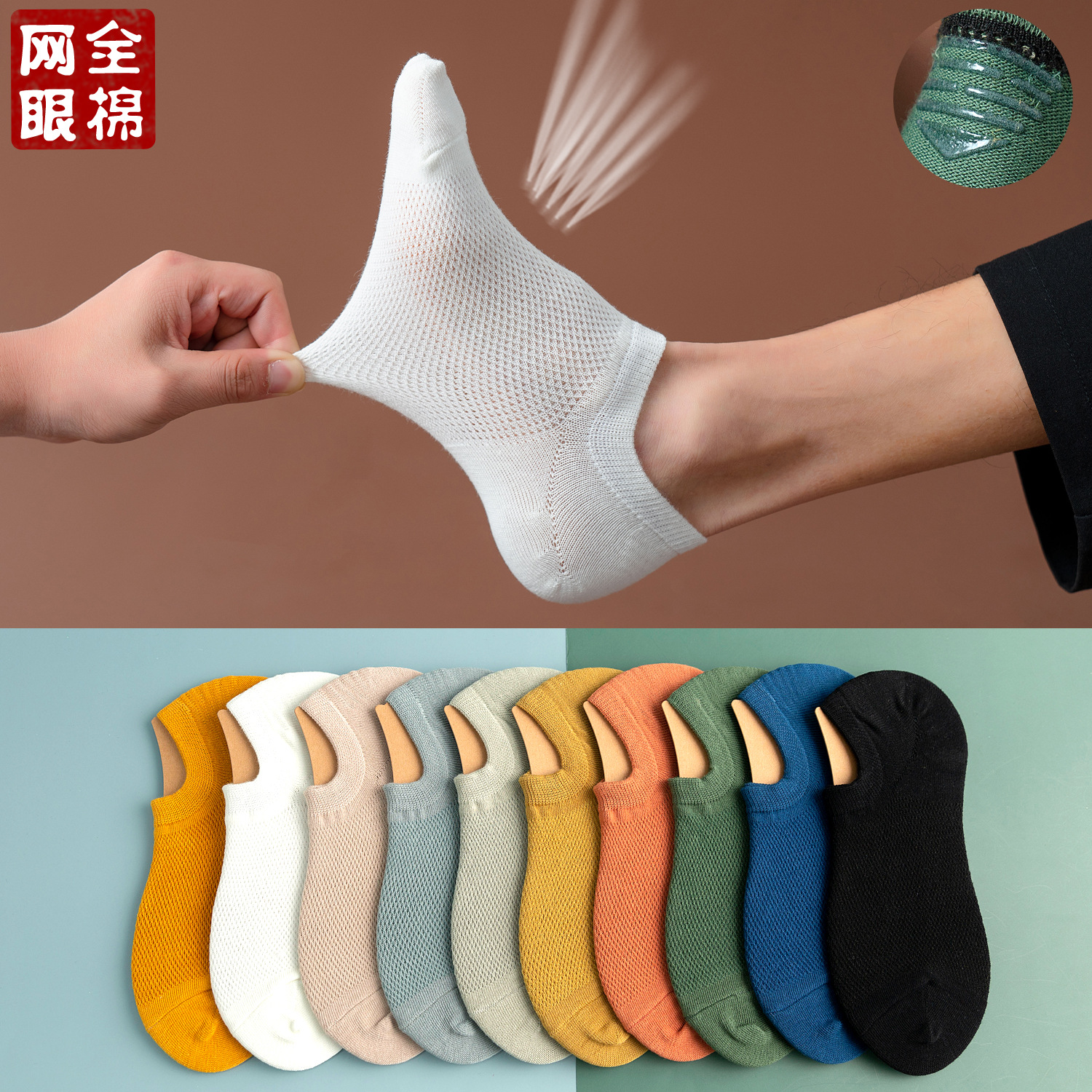 남자의 얇은 짧은 양말 단색 양말 메쉬 얕은 입 보이지 않는 양말 실리콘 미끄럼 방지 탈취제 면사 보트 양말스토어 가기