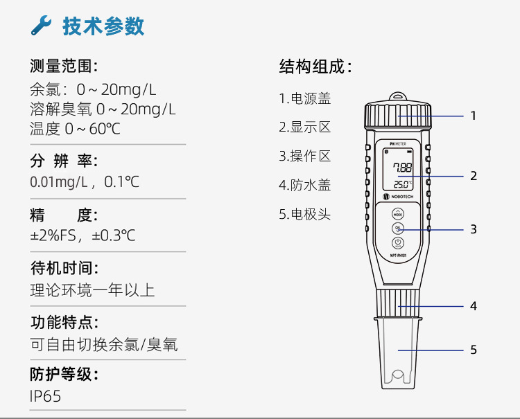 상하이 노보 펜형 염소염 측정기 NPT-CLOZ801 수돗물 염소염 측정기 오존수 모니터링