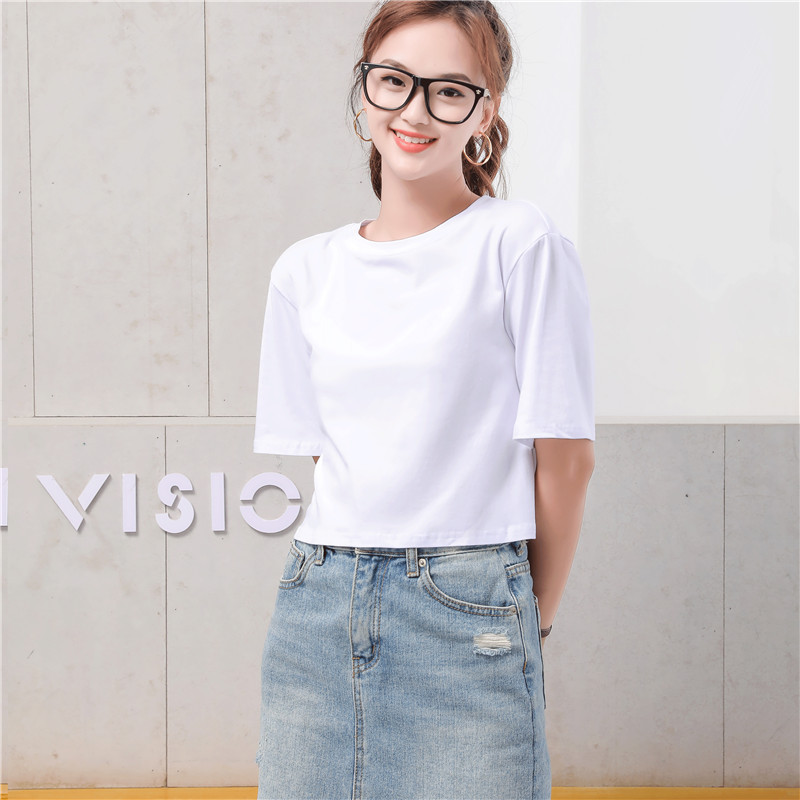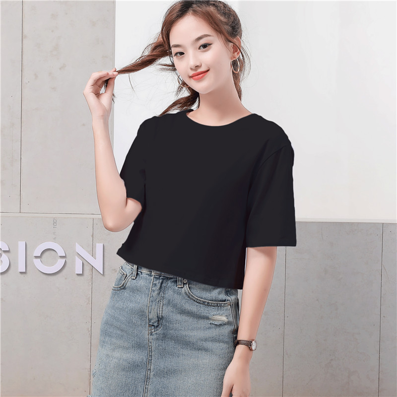 짧은 티셔츠 여성용 95 면 2023 새로운 티셔츠 느슨한 높은 허리 배꼽 누출 짧은 소매 배꼽 탑