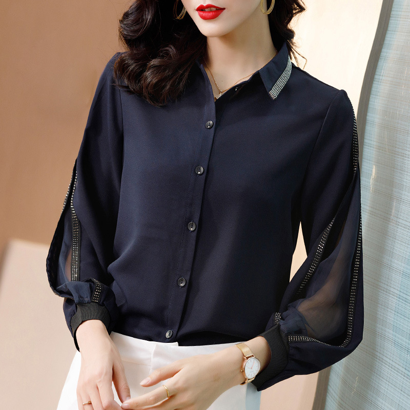 옷을 사는 사랑 옷 2023 가을 새 여자 쉬폰 셔츠 여자의 긴 소매 기질 바닥 셔츠 블랙 슬림 탑스토어 가기