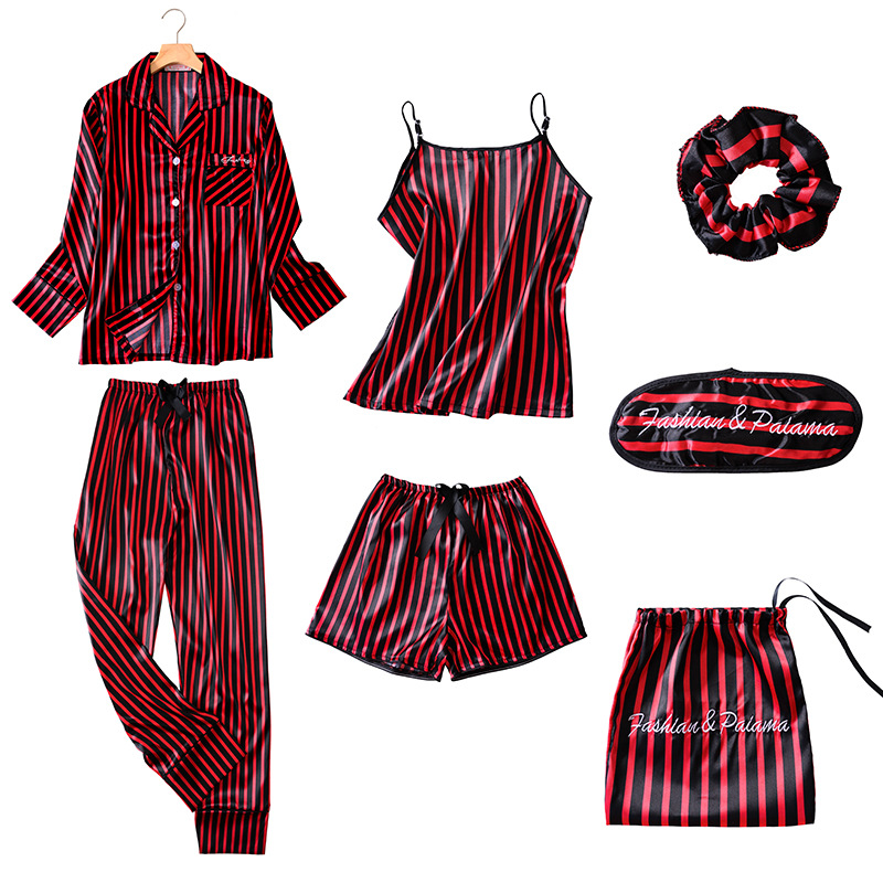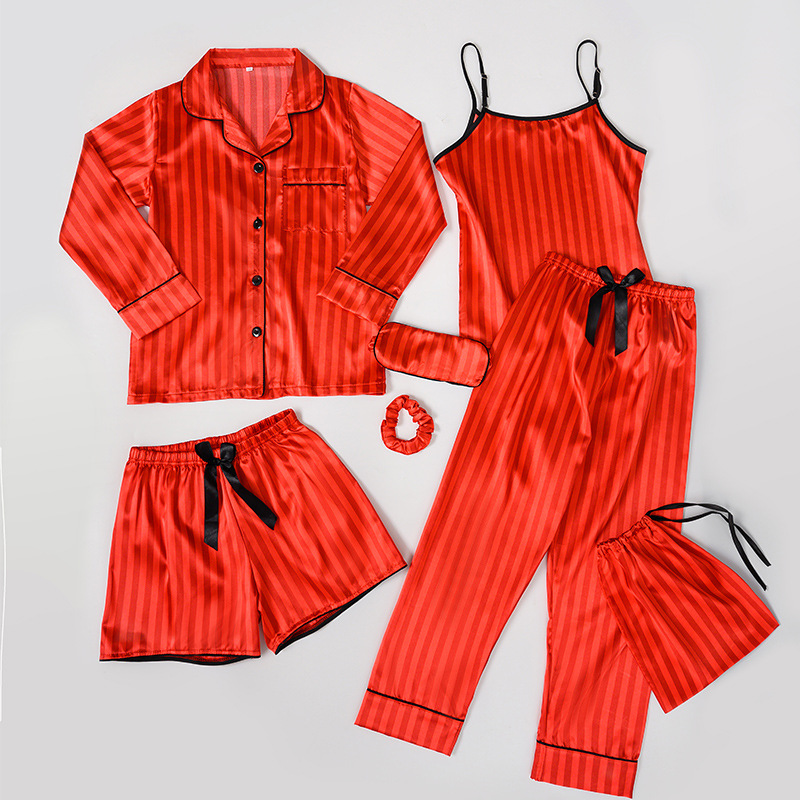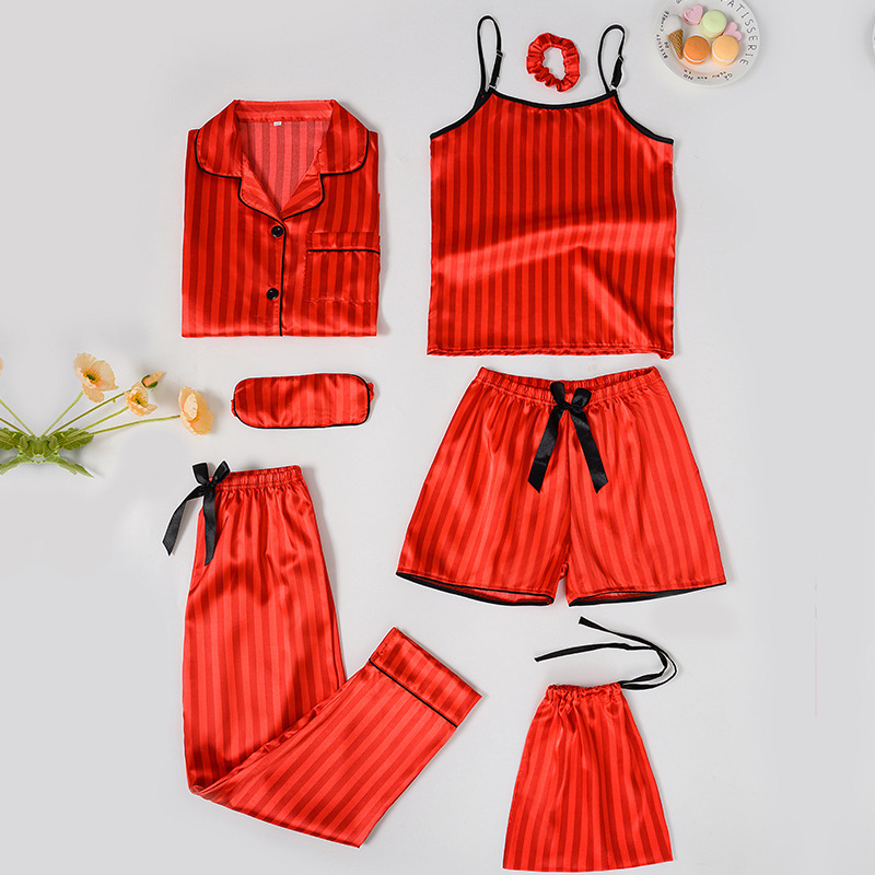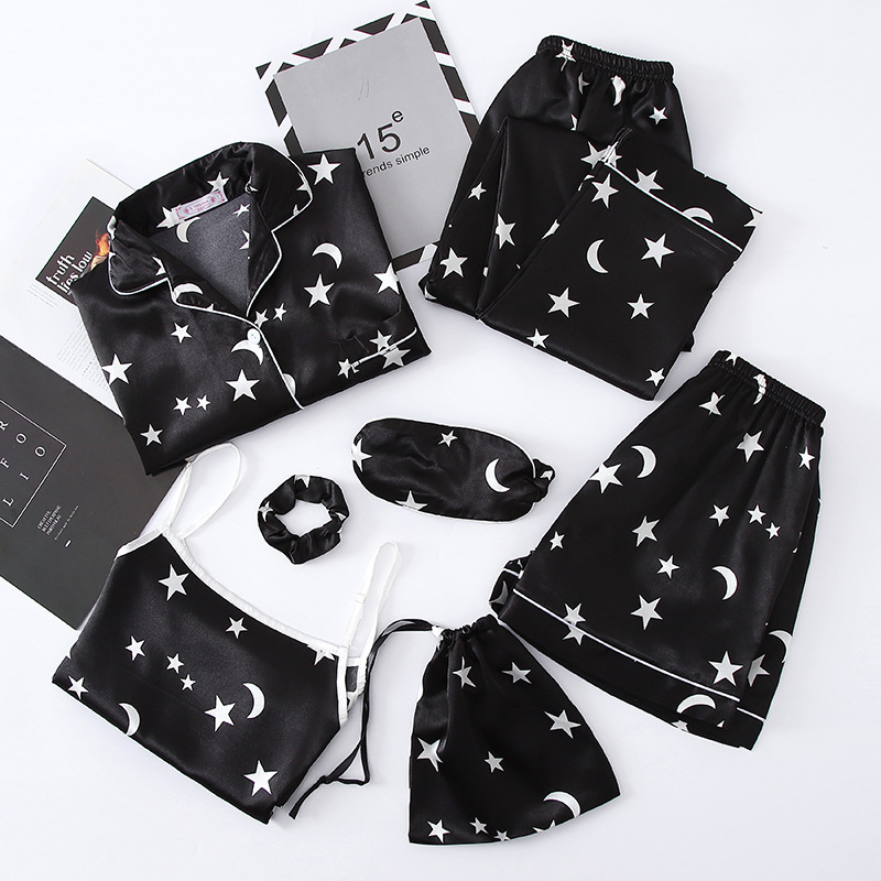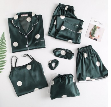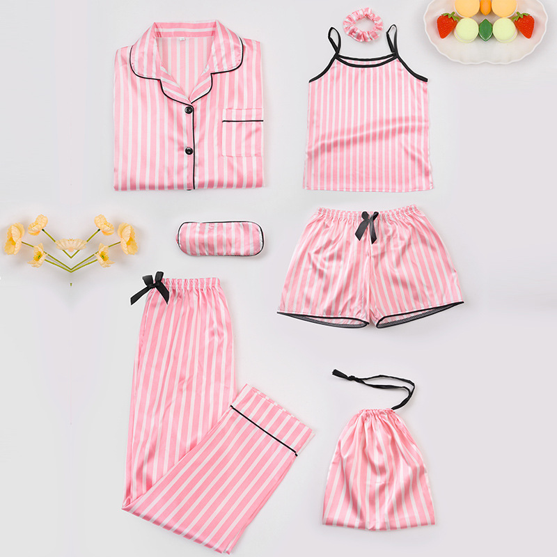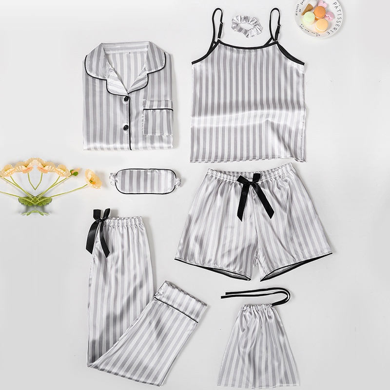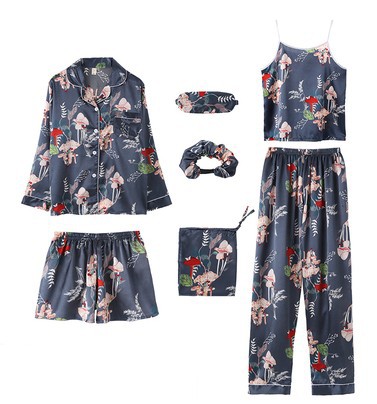2025년 외국 무역 공장 직송 사계절 한국 스타일 모조 실크 잠옷 여성용 봄 가을 긴팔 가디건 7종 세트 홈웨어