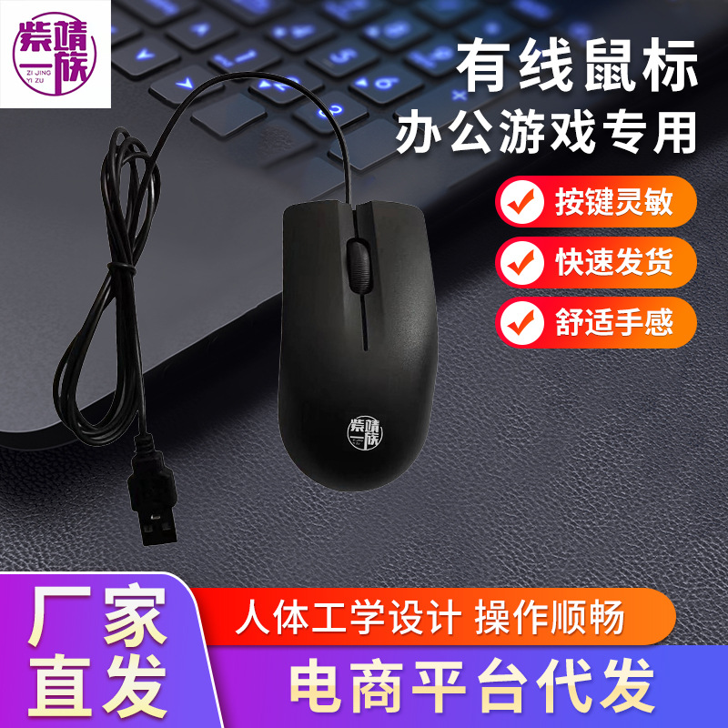 공장 스트레이트 헤어 유선 광학 마우스 USB 인터페이스 사무실 광학 마우스 휴대용 노트북 마우스 맨손 마우스